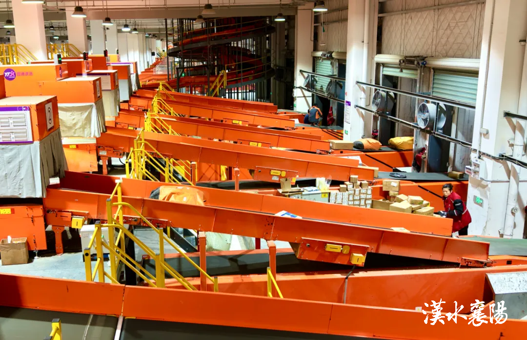 圆通襄阳智创园内,上万件快递通过数字化无人设备自动扫描、分拣。全媒体记者 乔森垚 摄