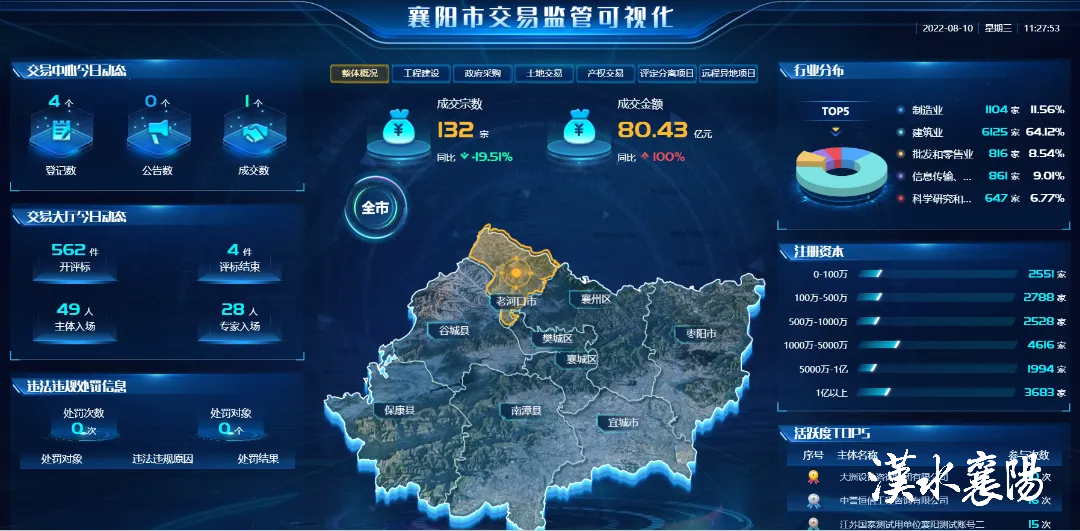 襄阳市公共资源电子交易行政监督平台的数据可视化大屏