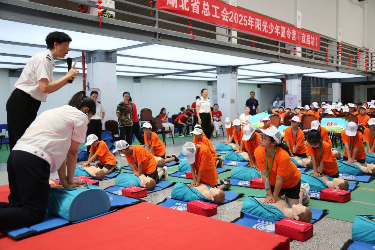 8月4日,湖北省总工会2025年阳光少年夏令营(宜昌站)于宜昌三峡白马营盛大开营。宜昌市急救中心急救导师们作为这场知识之旅的领航者,受邀出席活动,为240名怀揣梦想与好奇的青少年带来了意义非凡的“急救知识开营第一课”。