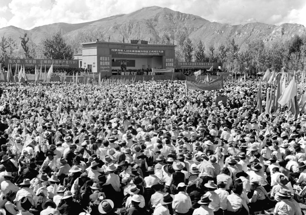 1965年9月9日,西藏自治区首府拉萨市3万多人集会,热烈庆祝西藏自治区正式成立。(新华社记者马竞秋摄)