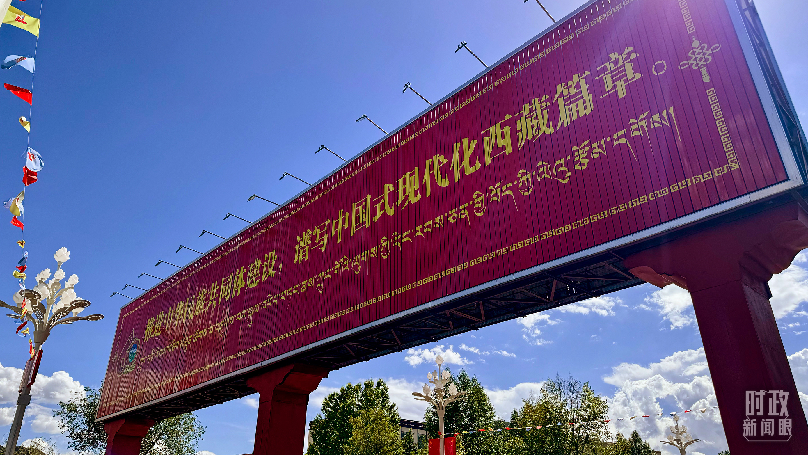 △西藏自治区成立60周年标语牌。(总台央视记者张宇拍摄)