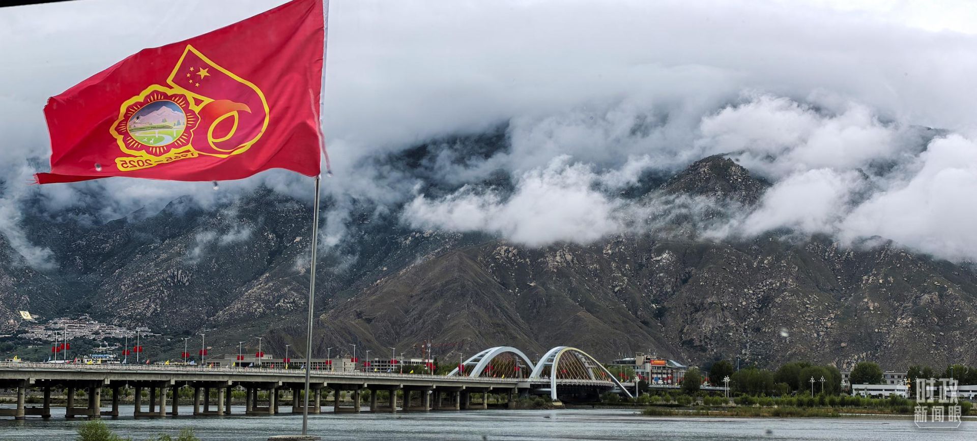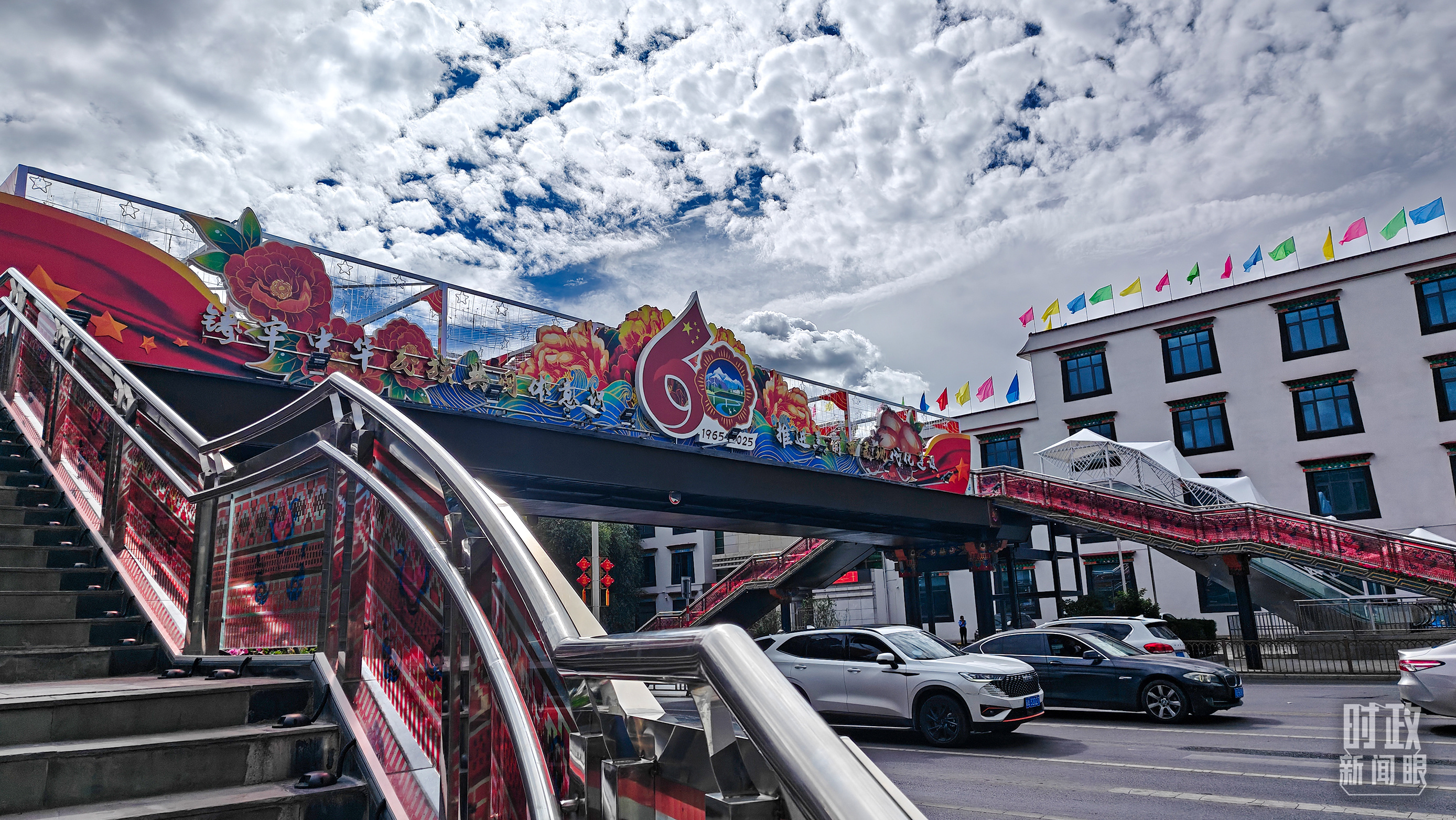 △西藏自治区成立60周年标识。(总台央视记者韩锐拍摄)