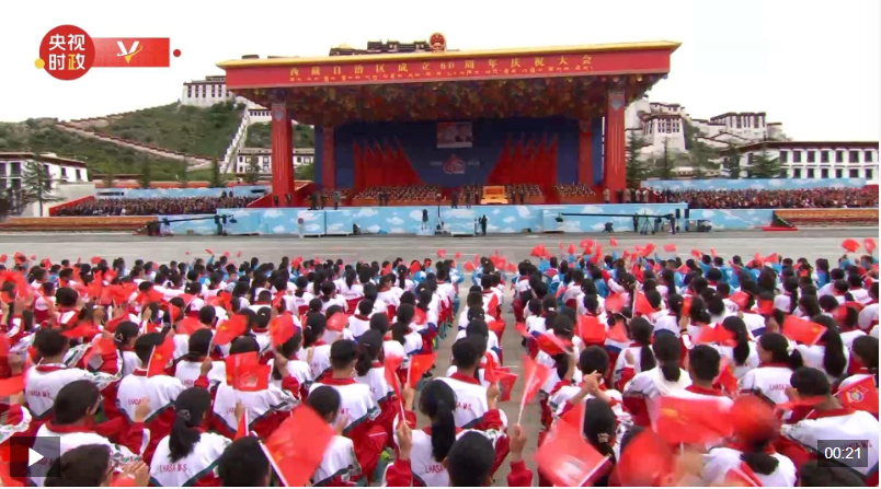 △西藏自治区成立60周年庆祝大会在拉萨布达拉宫广场隆重举行。(总台央视记者赵化拍摄)