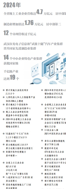一组组跃动的数字背后,智能车间里机械臂精准运转的轻鸣隐约可闻,纤若毫发的光纤中正奔涌着看不见的信息洪流,湖北产业倍增的蓬勃活力扑面而来。