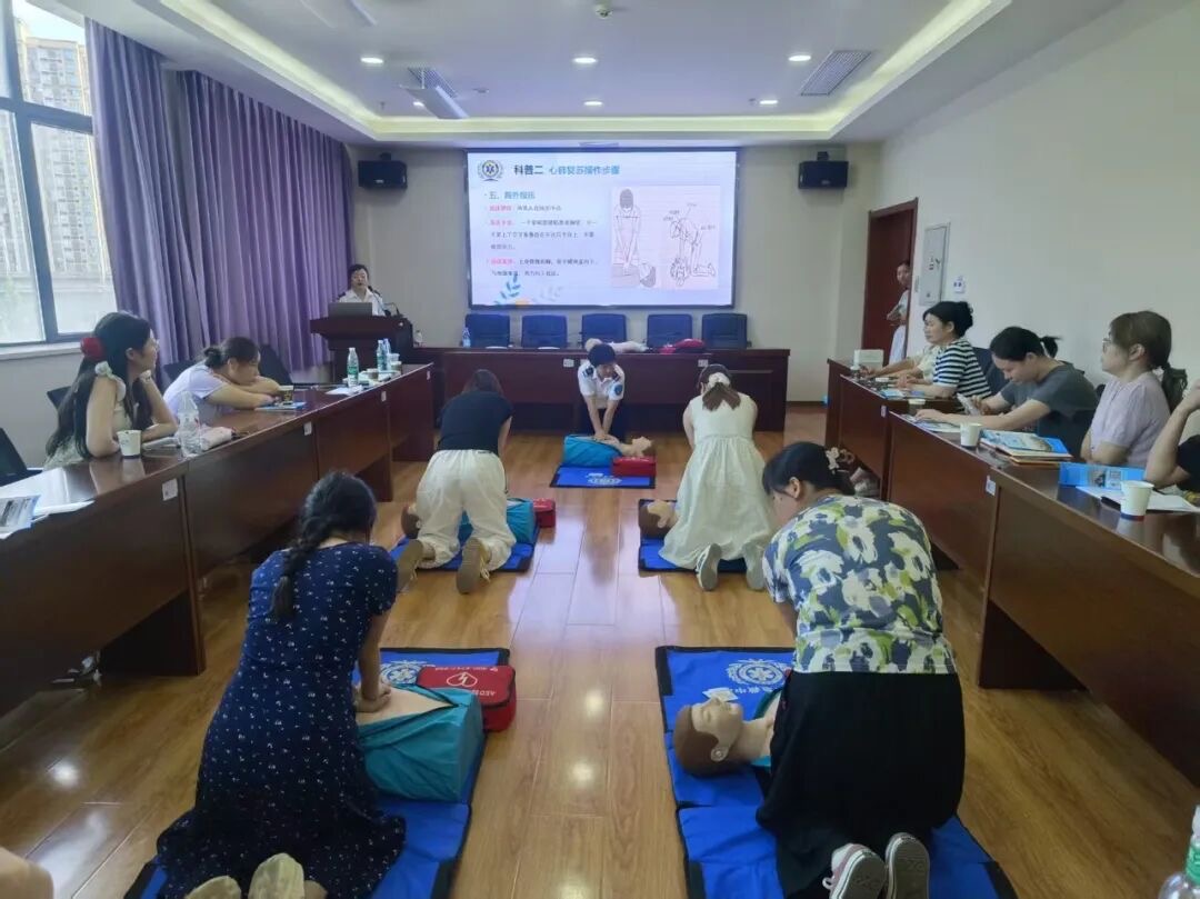 培训现场,急救导师通过课件进行理论知识讲解,结合校园常见意外场景,剖析了海姆立克急救法在气道异物梗阻中的科学应用,演示“石头、剪刀、布”的操作要点;强调了心肺复苏的操作要领,包括判断意识、胸外按压、人工呼吸等关键步骤;介绍了救命神器“AED(自动体外除颤器)”的操作流程,强调AED早期介入、随到随用的原则。理论学习后,在急救导师的指导下,参训人员纷纷上前用模拟人实操演练,培训导师逐一纠正动作细节,确保急救手法规范、有效。现场学习氛围浓厚,实操练习、互动提问不断,培训取得较好效果。