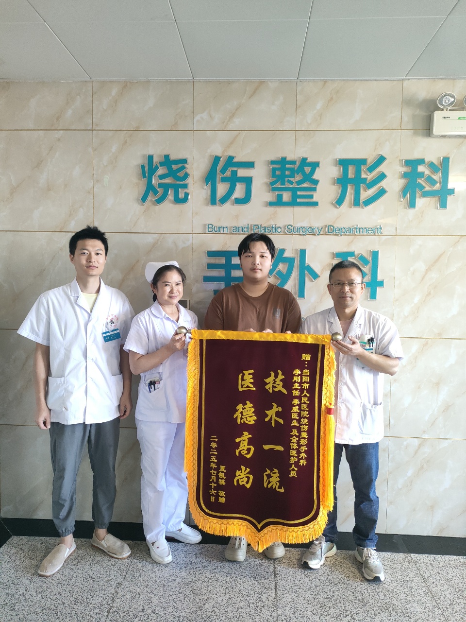 近日,当阳市人民医院烧伤整形手外科收到了一份特殊的礼物——一面写有“医德高尚、技术一流”的锦旗。送来锦旗的夏同学,不仅是一位康复出院的患者,更是一位因这段就医经历坚定从医梦想、最终如愿考入医学院的“准医生”。