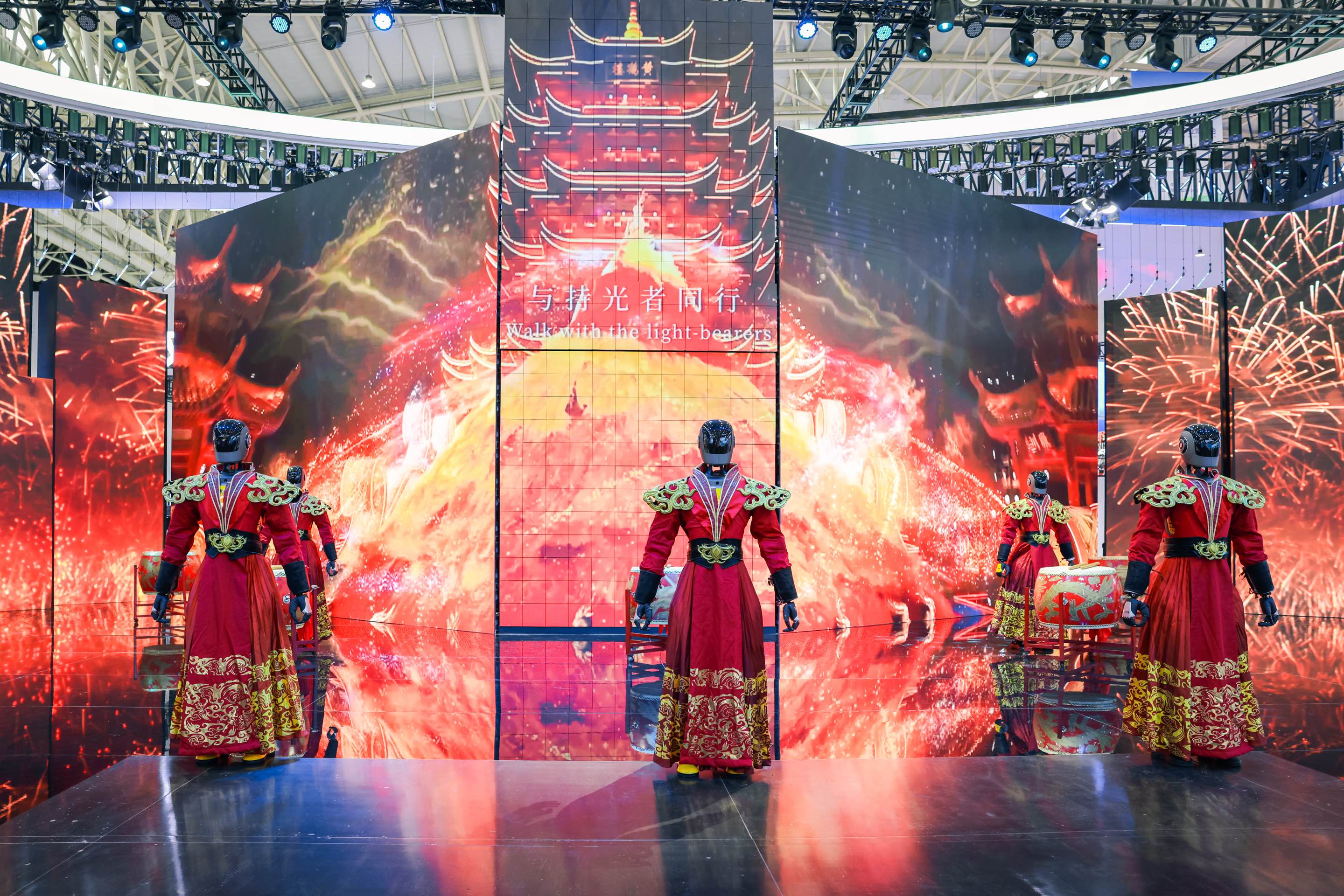在武汉馆,5台由当地科技企业光谷东智公司打造的人形机器人,以流畅的肢体动作、精准的节奏把控完成了精彩的开场舞表演。舞台背景则巧妙融入黄鹤楼、光谷星河、空轨列车等元素,让科技演绎与城市文化深度交融,引来大批观众层层围观。不少外省展商也主动前来表达合作意向,光谷东智公司相关负责人介绍,眼下,公司正加大投入打造机器人文艺IP,尝试与湖北、陕西等地的历史文化资源深度融合。