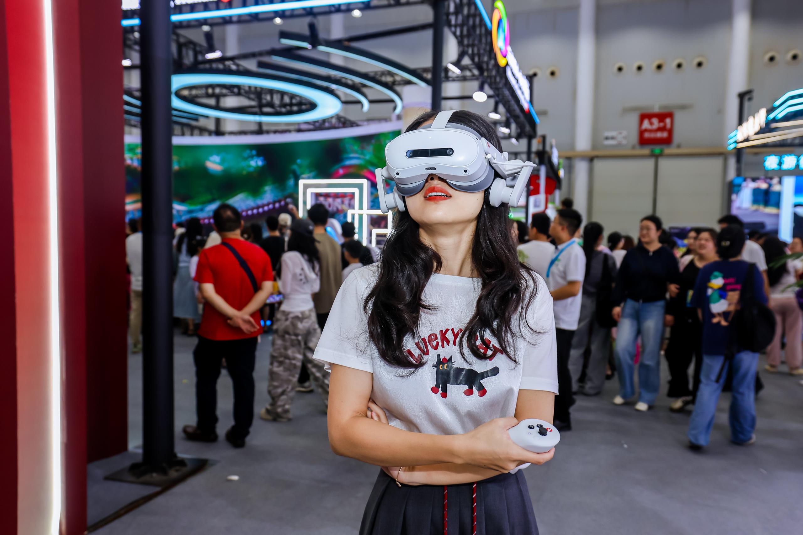 湖北十堰亚新文化集团推出的国内首个MR剧游式导览系统《黑暗传与大富翁》成为展会焦点,引来众多观众排队体验。长江日报记者戴上MR设备后,随着指引前行,仰头看到展馆穹顶幻化为浩瀚星空,数十米高的盘古大神跨越人群,灵动的七色鹿在脚边跳跃,天穹破裂时瀑布倾泻,女娲长尾蜿蜒补天。展会期间,亚新文化集团接待了来自全国各地的文旅产业同行。山东文旅集团、安徽文旅集团、重庆文旅企业、海南文旅企业等全国60多家文旅企业负责人来到亚新展区体验MR产品,并洽谈合作事宜。众多文旅企业希望亚新文化集团能够通过MR技术对当地文化进行升级打造,推出爆款MR产品系列,助力地方文旅产业发展。