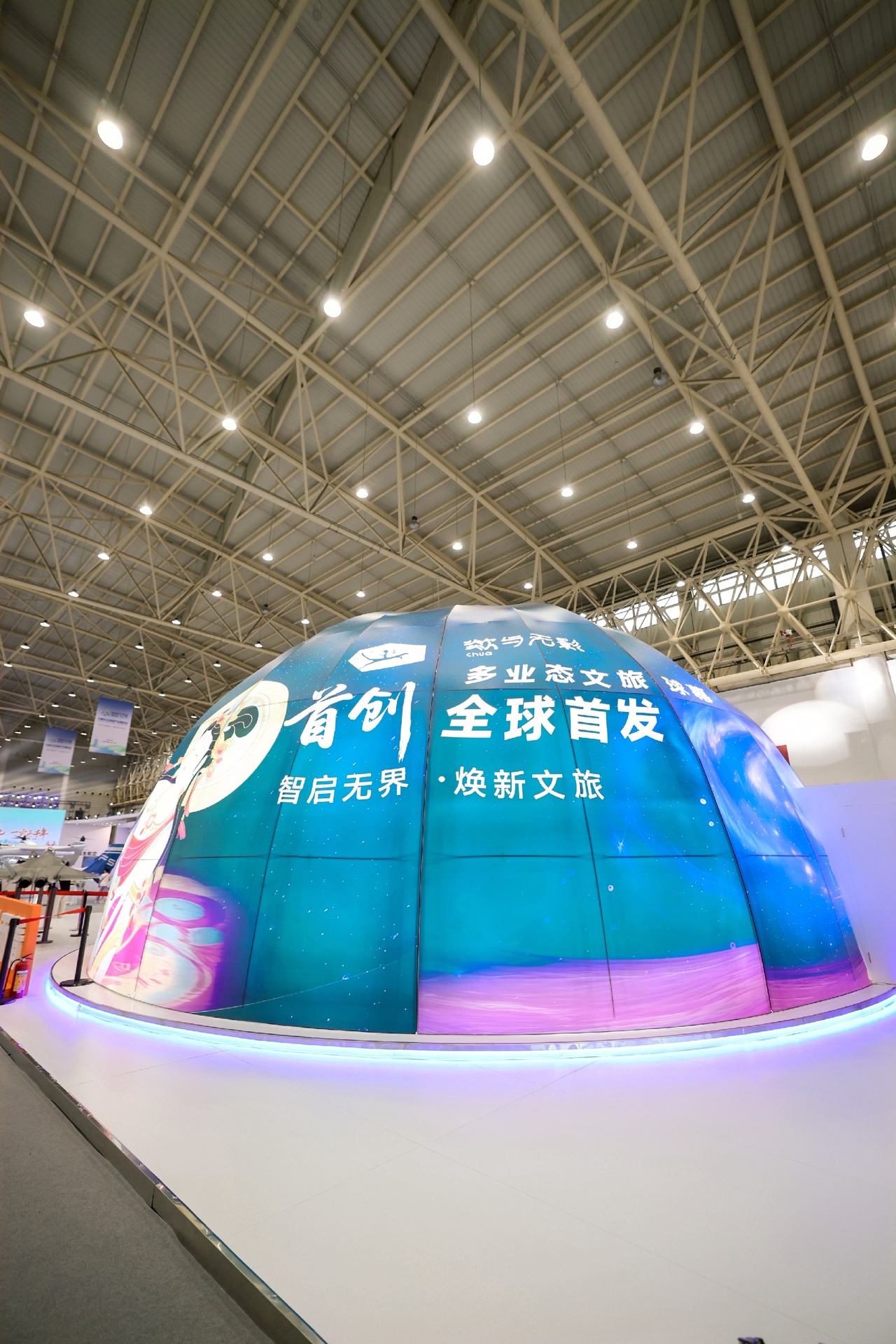 展区内,“多业态文旅沉浸式球幕空间”将沉浸体验推向新高度,其融合8K超高清分辨率与360°全景观影技术的裸眼全沉浸式8K球幕,在文旅博览会上全球首发,可容纳多种业态;研学、科技馆、博物馆、新品发布会等场景,都能在馆内瞬间切换。“走进这里,不用赶路,一秒就能从三亚穿越到广州,从海底直达太空。”一位游客感叹道。站在球幕之中,观众可瞬间穿越不同时空,看到天宫空间站在眼前飞过。球幕空间还吸引众多文旅展商前来观摩、洽谈业务。
