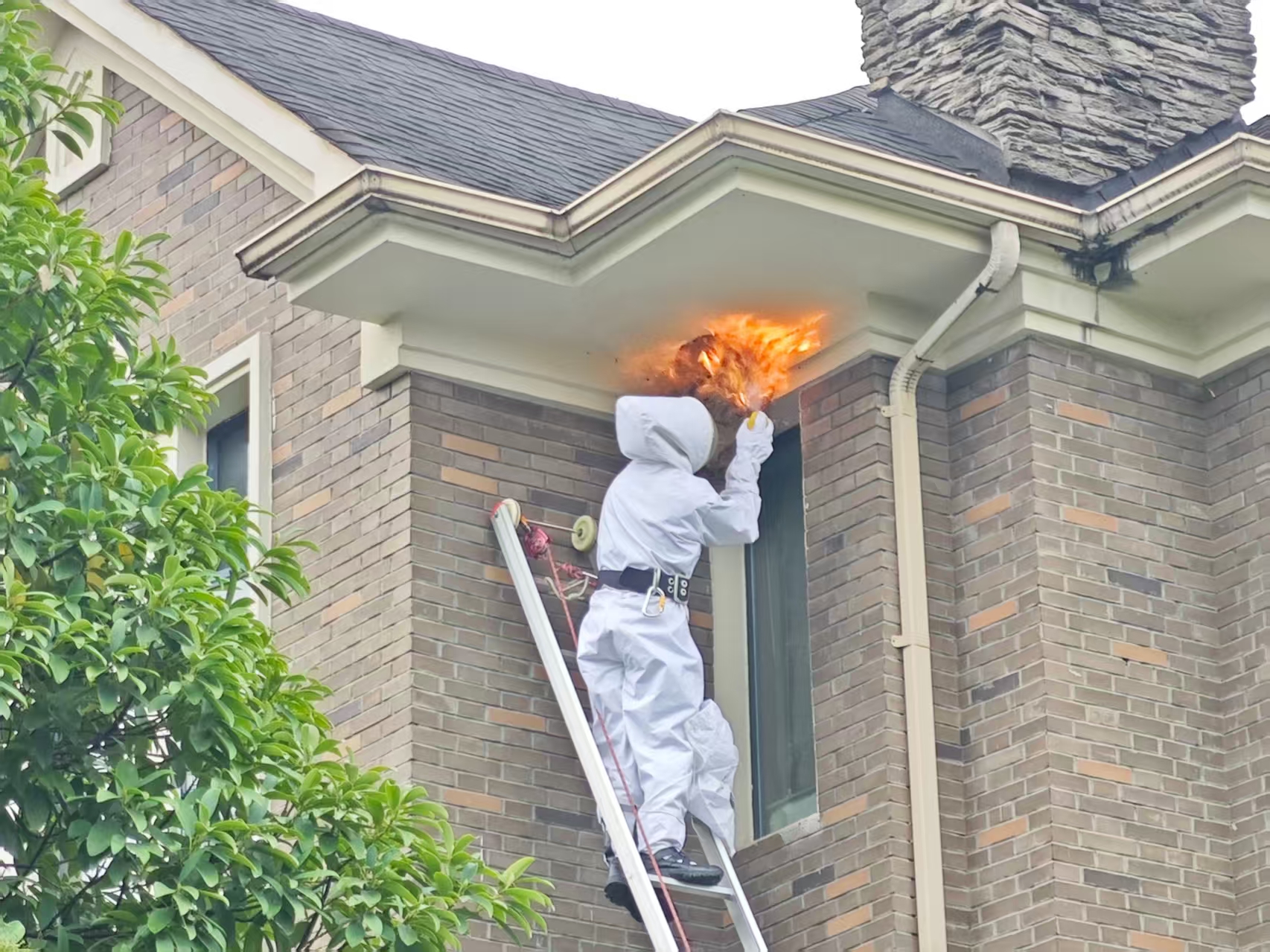 9月12日上午,伍家岗区一小区物业向消防部门紧急求助,有马蜂在一居民楼外墙做了一直径约50厘米的马蜂窝,危及居民安全。伍家岗区沈家店路消防救援站迅速出动,成功消除安全隐患。