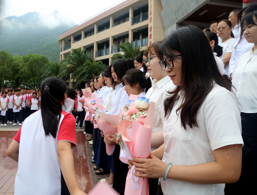 活动在庄严的升旗仪式中拉开序幕。副校长李华平致辞,勉励全体教师弘扬教育家精神,担当育人使命,为教育强国建设贡献智慧与力量。活动中,学生代表为教师们献上鲜花,全体学生深情朗诵诗歌《你和我》(作者:王桂林)。现场气氛热烈,温情涌动。活动最后,全校师生齐声诵读《兴山一中赋》,共同祝愿母校蒸蒸日上、灿烂辉煌。