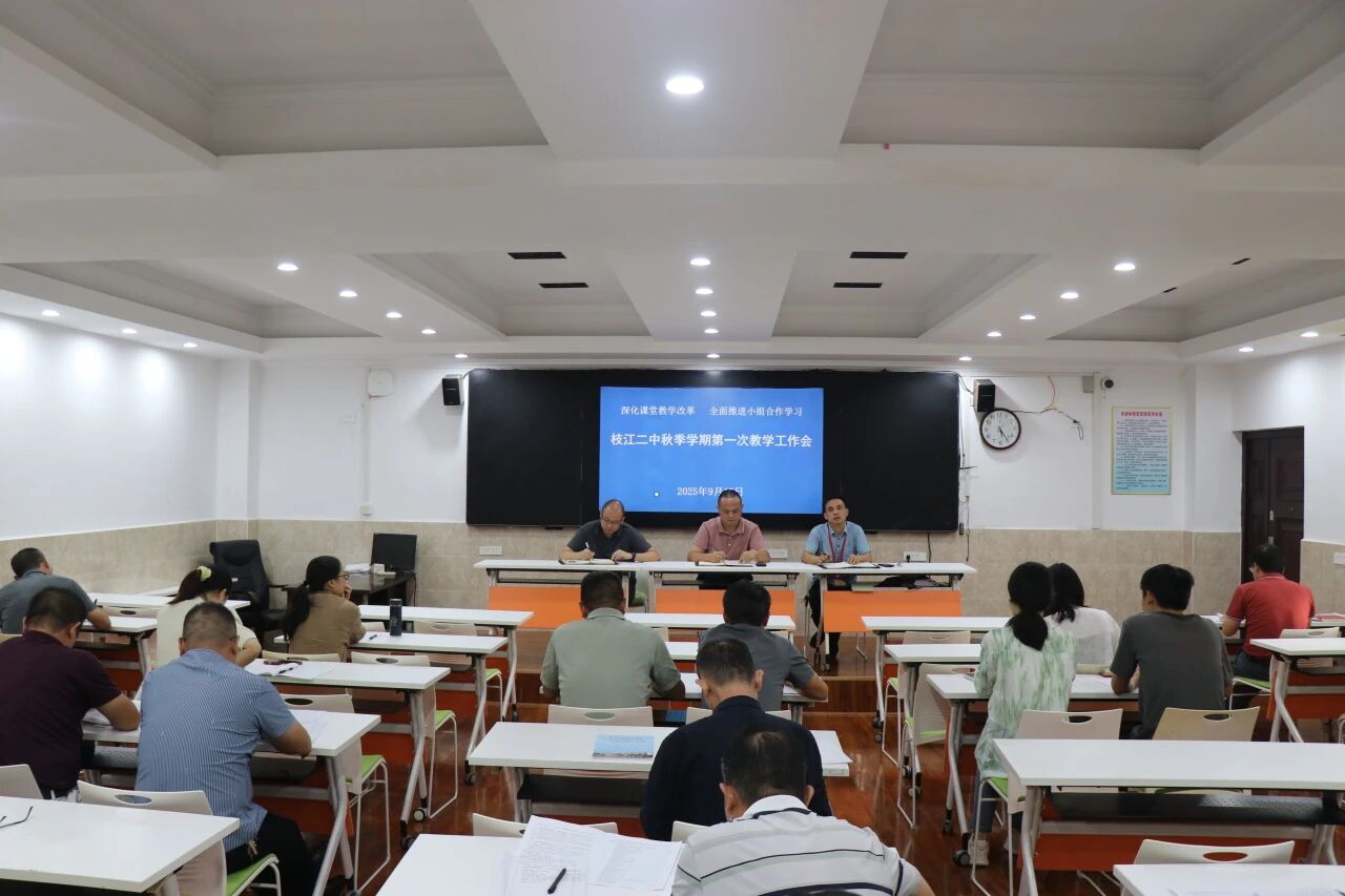 9月15日下午,枝江二中2025年秋季学期第一次教学工作会在学校多媒体教室召开。全体学科教研室主任、备课组长、各年级主任、教学主任与教务员共同参会,为新学期教学工作谋篇布局。副校长曹进军主持会议。