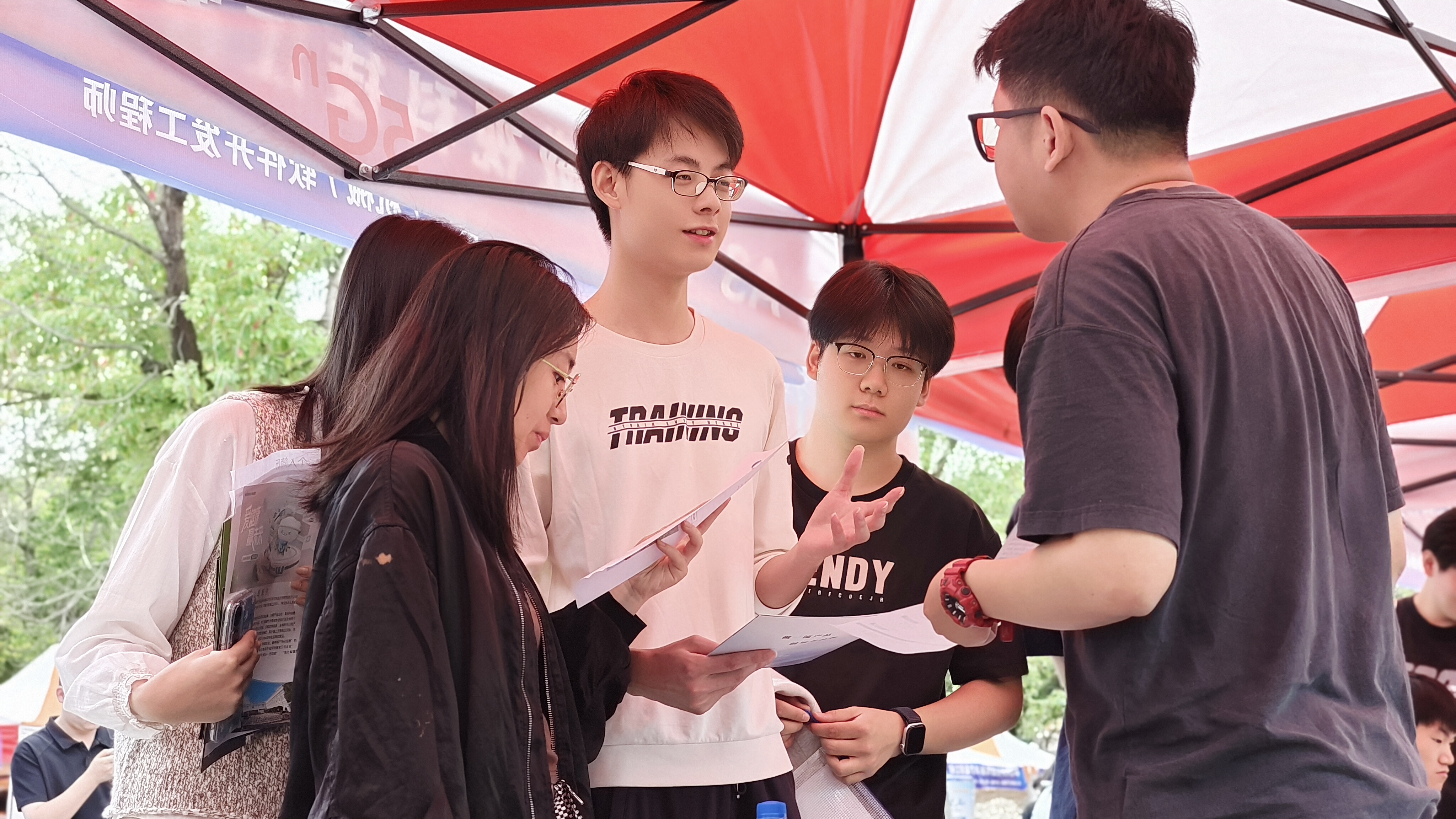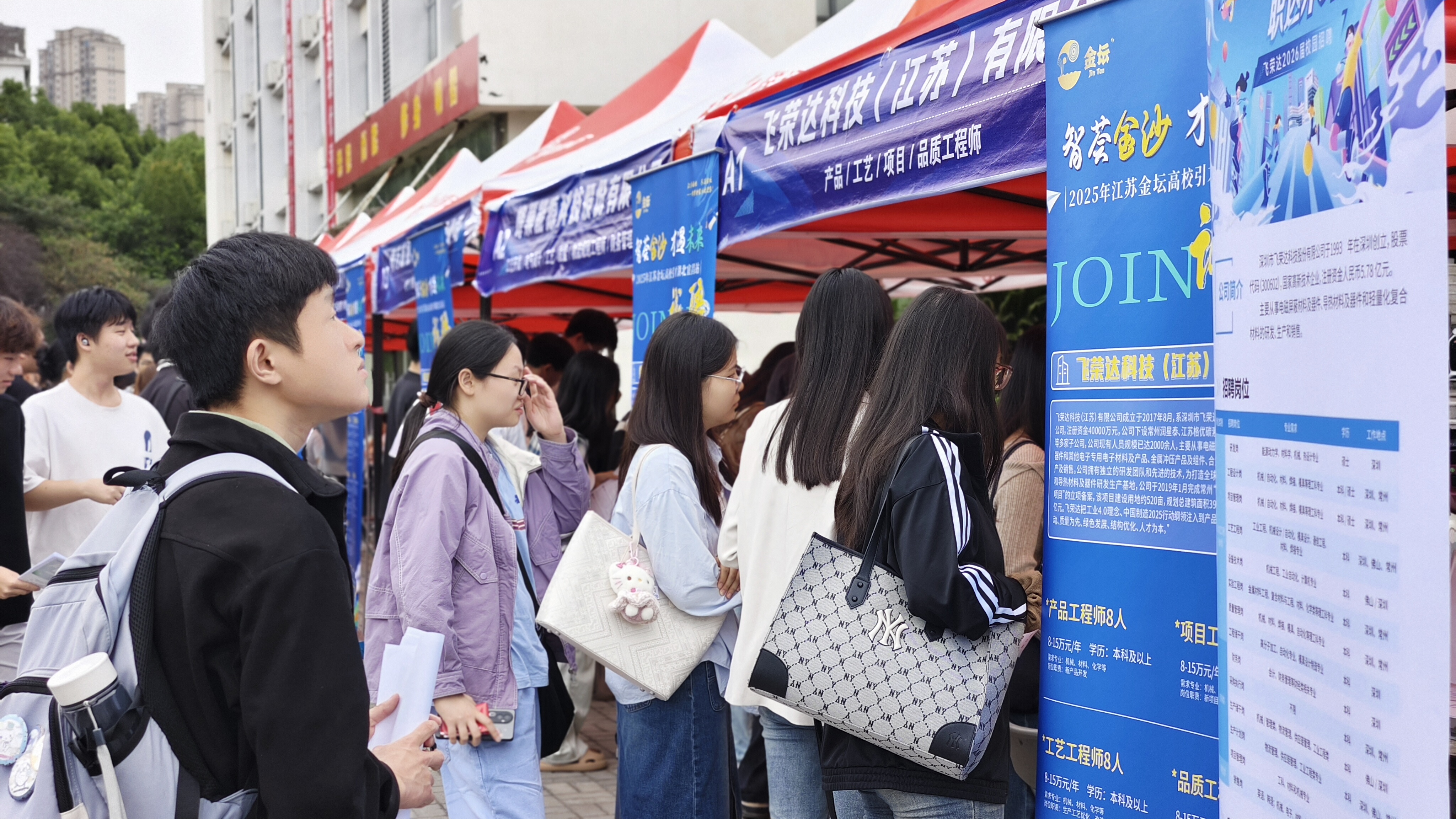 25日,在三峡大学科技学院校本部C1、C2广场秋季招聘会现场,来自浙江新昌、江苏常州、湖北潜江、宜昌等地的140余家企业,现场提供了7500多个就业岗位,涉及新媒体、机械、化工、医药等16个行业。