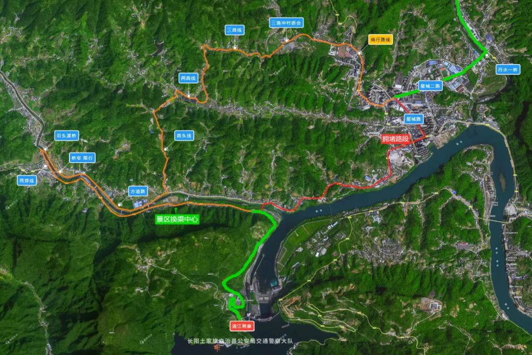 具体路径:长阳收费站(G50沪渝高速出入口)→ G318(上聂线) → 丹水路 → 久兰路 → 龙舟大道 → 隔河岩路 → 清江画廊游客中心