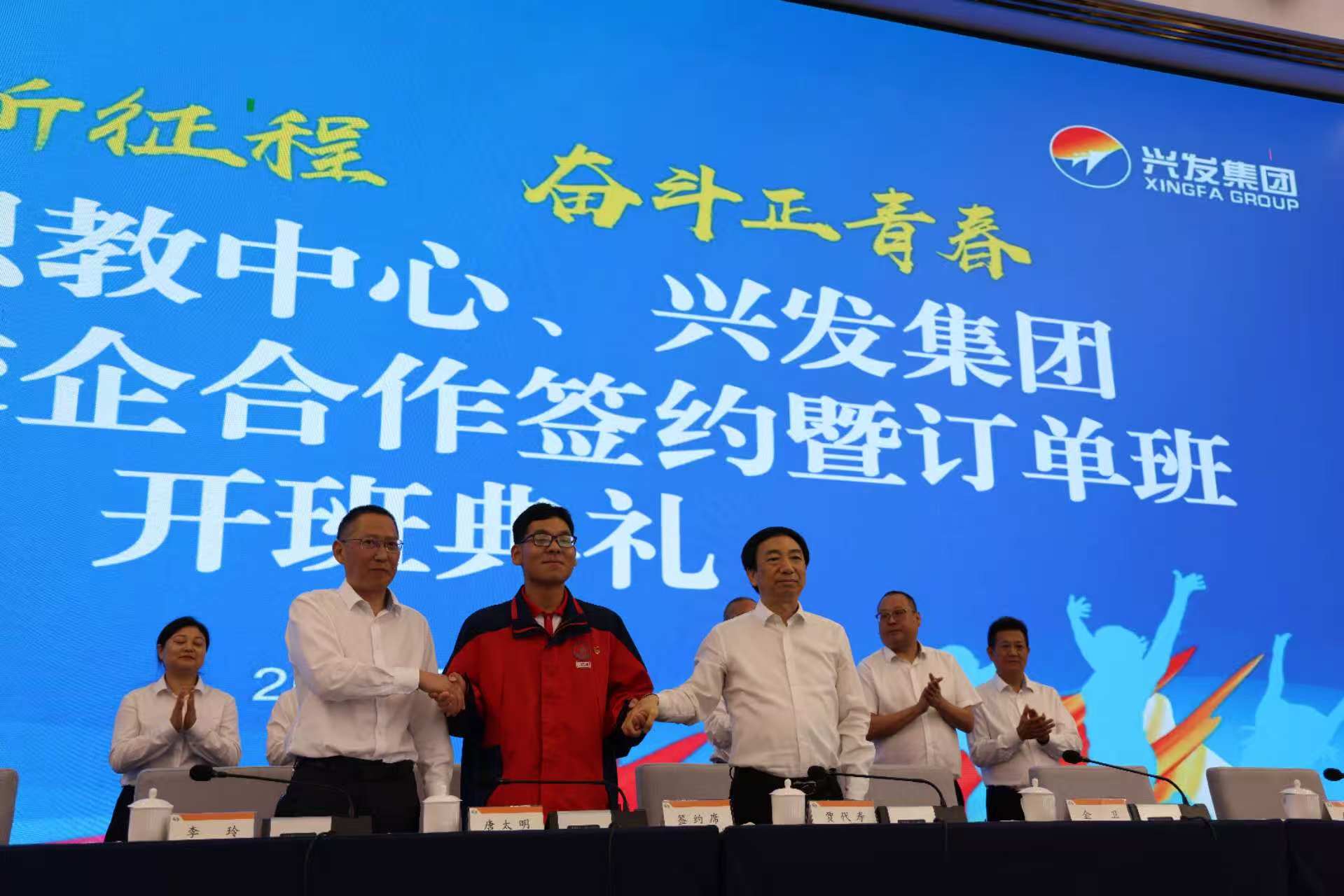 签约仪式现场,在与会人员的共同见证下,校企双方签订了校企合作协议,与学生签订了“兴发订单班”三方协议。