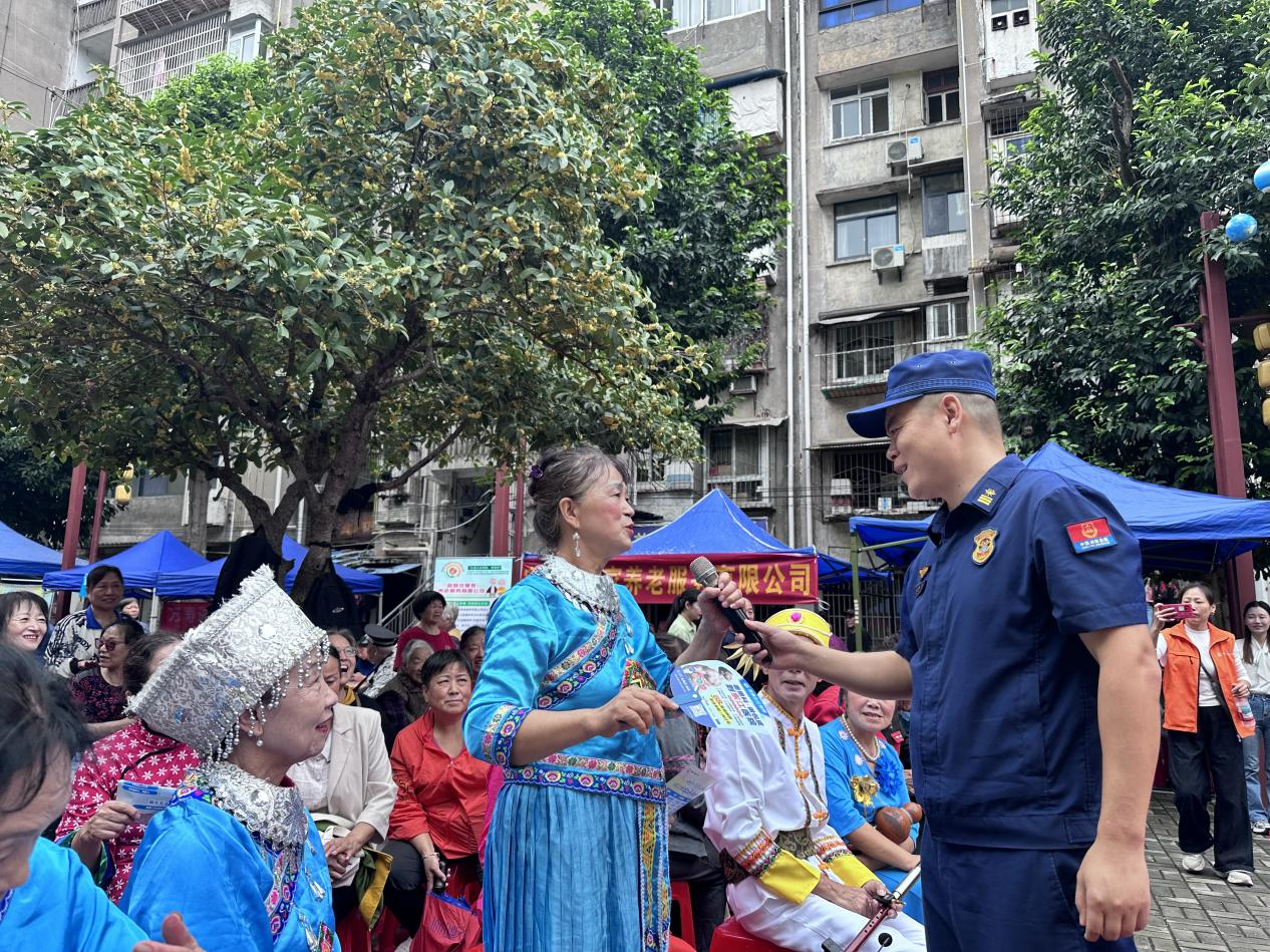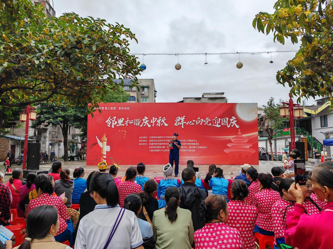 9月29日,伍家岗区消防救援大队借力张家店社区“月满中秋喜迎国庆”活动,以“上台宣讲+互动问答”形式开展消防宣传,让安全知识随节日氛围深入人心。