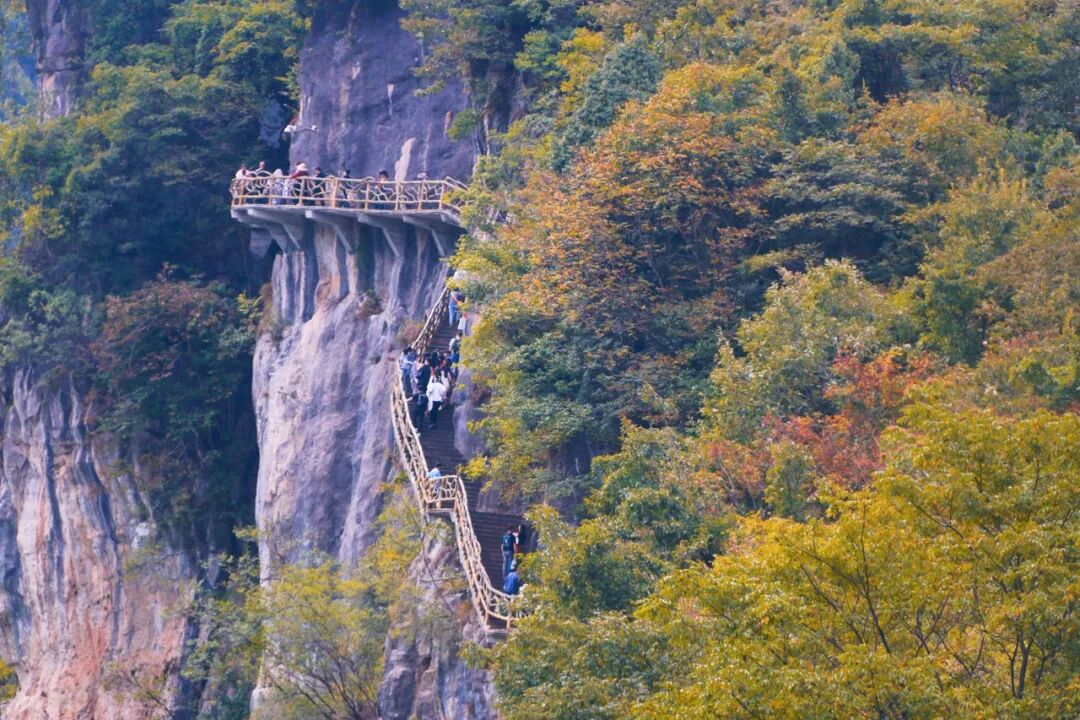 景区内千峰万岭或如利剑直刺云天,怪石嶙峋引发无限遐想;龙咏溪与凤舞溪的瀑布群飞泻700余米,其中龙咏大瀑布为世界落差最大的山泉瀑布。6300米绝壁栈道如“方山天路”悬于云海,行走其上好似云端漫步。