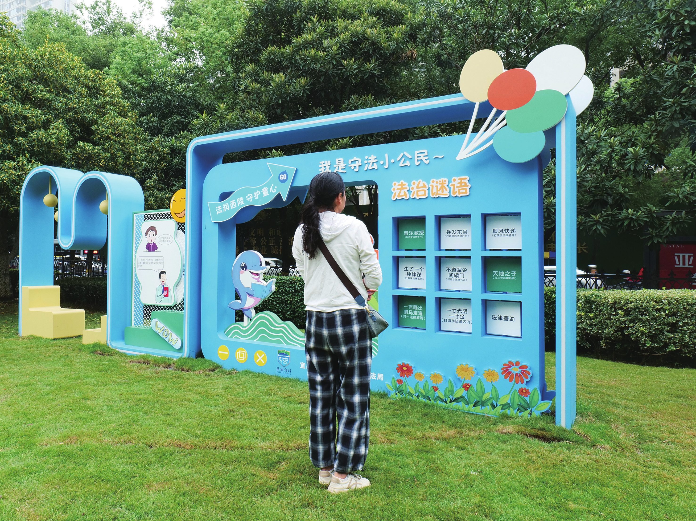 据悉,打造宜昌市首座青少年法治文化阵地,是加强青少年法治宣传教育、拓展法治教育阵地的重要举措,旨在充分结合儿童认知特点,摒弃传统说教模式,将法治元素与自然景观、游乐设施相融合,通过“看得见、摸得着、玩得到”的形式,让法治教育更具吸引力。(通讯员万静、吕维汉 摄)