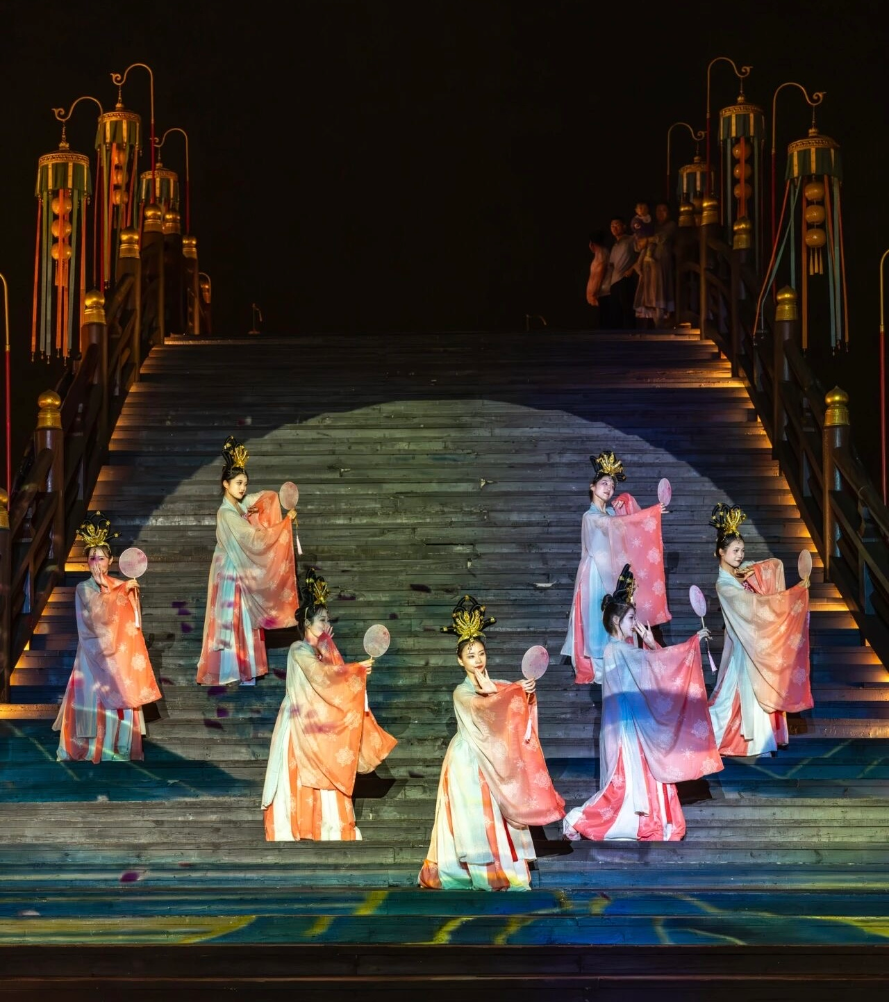 与此同时,景区还特别邀请八位国风推荐官每日“轮番上阵”,与游客零距离互动。游客不仅能与推荐官对话品唐韵,还能亲手点燃鱼灯,步入灯火璀璨的唐风街市,体验“一步一景”的穿越之感。