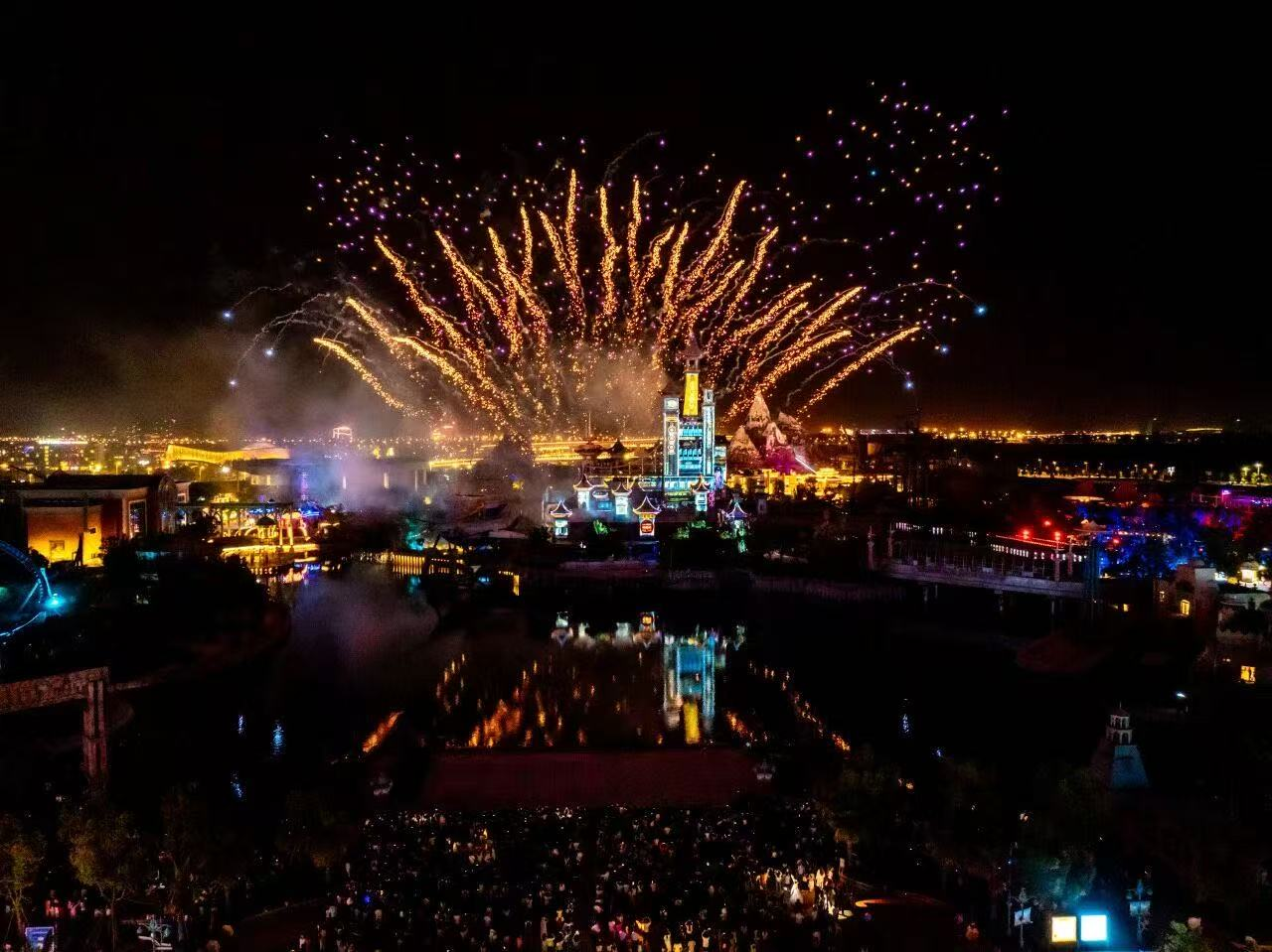 在华侨城奇幻度假区,烟花秀、奇梦城堡光影秀全新升级回归,连续7天燃放,规模创下新高。10万发浏阳焰火大会同款烟花、千架无人机与7D城堡光影梦幻联动,为游客呈现了一场集“梦幻、科技、焰火”于一体的视觉盛宴。