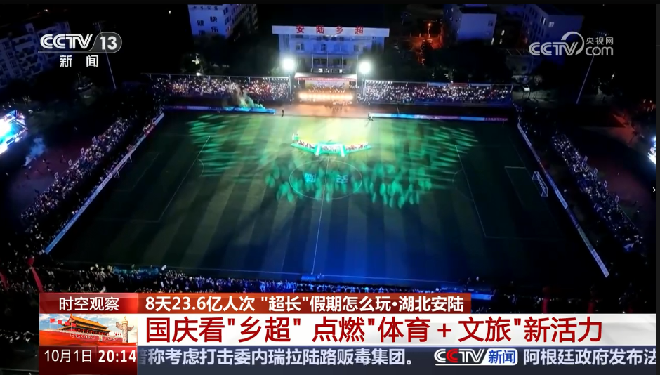 体旅融合同样“出圈”。10月1日晚,央视新闻《东方时空》聚焦安陆“乡超”,报道《国庆看“乡超”点燃“体育+文旅”新活力》,这也是央视第6次关注安陆“乡超”。该赛事带动当地酒店住宿、餐饮行业营业额预计提升40%以上,推动游客从“路过游”转向“度假游”。