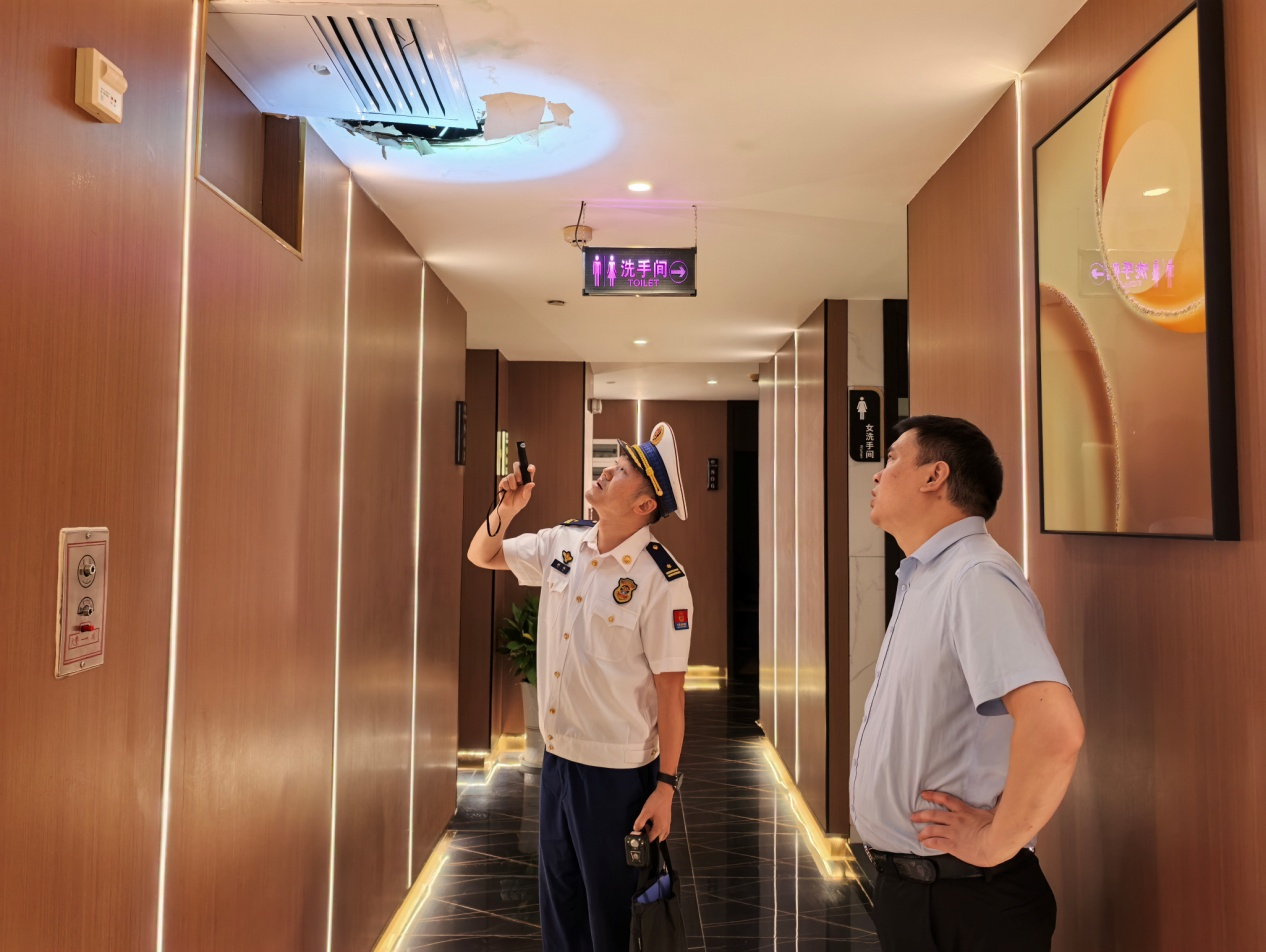 行动中,检查人员先后对辖区盛皇娱乐KTV、上水悦足道、御雅亭足道等人员密集场所开展“地毯式”隐患排查。重点围绕疏散通道畅通、消防设施运行、消防器材配备、用火用电用气管理、电动自行车安全停放充电等核心要点逐项核查,对发现的消防器材损坏、杂物堵塞消防通道等问题,当场督促整改落实,坚决杜绝“带病运营”。在公园路、江汉大道沿街商业门店,消防站防火班人员对沿街餐饮、住宿、零售等商铺逐一开展消防安全隐患排查,重点排查杂物堆放占用堵塞消防通道、“三合一”场所违规住人等情况。针对宾馆住宿场所人员流动性强、功能布局复杂等特点,消防人员同步开展“六熟悉”和实战演练,有效提高了消防人员对场所的熟悉程度,为今后灭火救援工作打下良好基础。