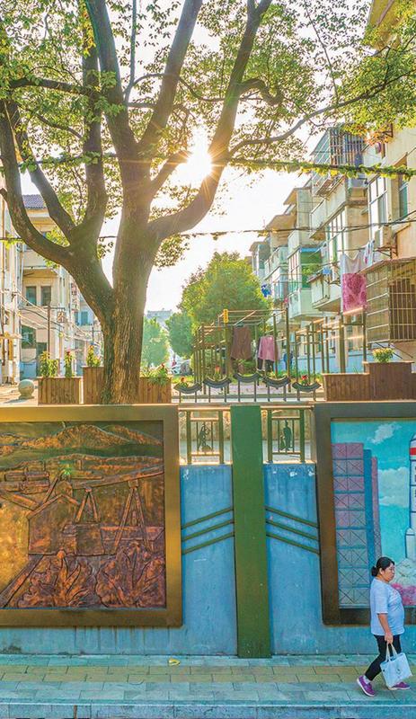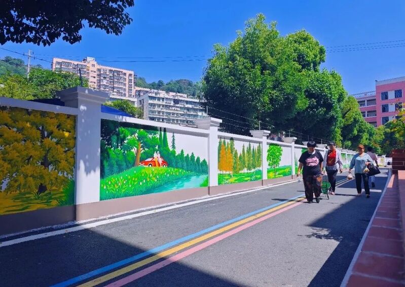 大塘社区老旧小区改造后的浮雕文化墙