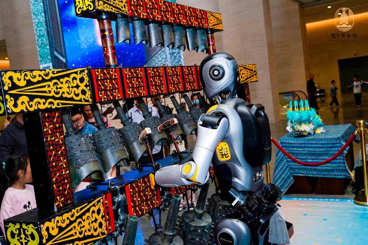 屡屡实现新突破未来更是一片光明在随州博物馆,曾侯乙编钟与人形机器人跨界合奏。(湖北日报全媒记者 易雯 摄)