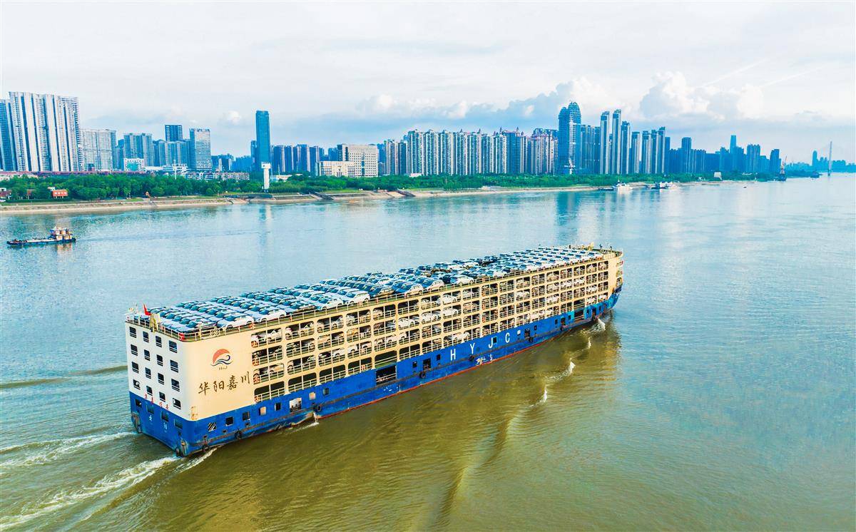 经济总量三上台阶这里经得起疾风骤雨满载汽车的货轮行驶在长江武汉段。(湖北日报全媒记者薛婷 摄)