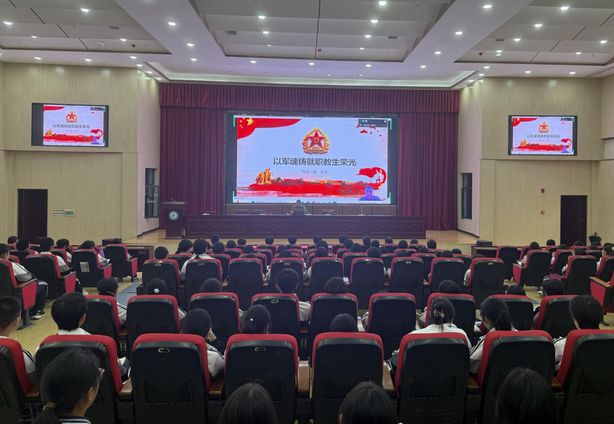 时值新中国七十六载华章,举国同庆之际,为厚植家国情怀,当阳市职教中心优秀校友、现役军人张洋荣归母校,为全体师生作了题为《以军魂铸就职教生荣光》的精彩报告。本次活动采用“现场+直播”相结合的方式,覆盖全校师生,反响热烈。