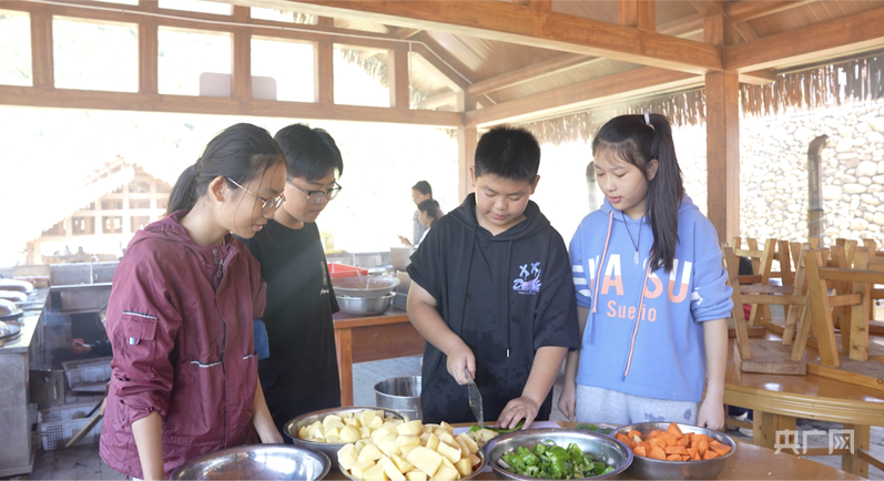 研学的学生们亲手制作农家菜(央广网发 茅箭区融媒体中心供图)
