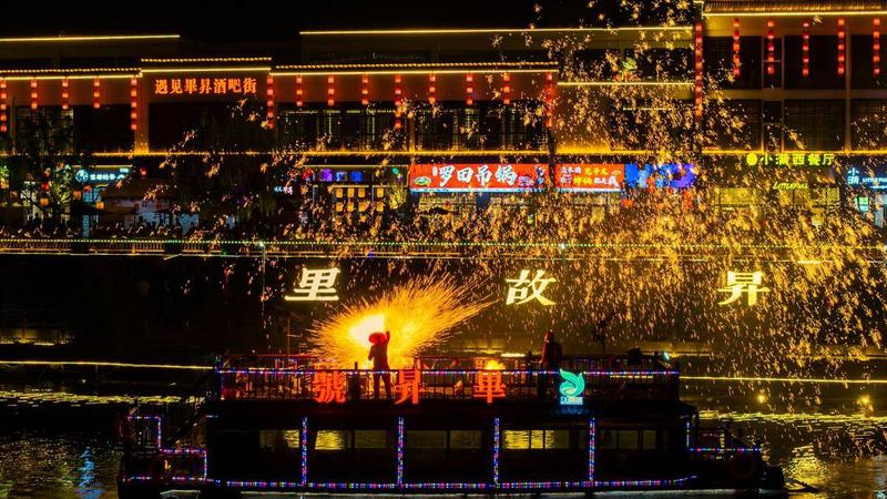 市场热度直观印证产品吸引力:遗爱湖夜游项目游船运力,从每日600人次提升至1400多人次;江山明月剧场1369个座位每晚演出一票难求,7日、8日还额外增设100个票位。省文旅集团最初预计《大江东去》上座率不足40%,最终却实现100%满座。不仅如此,麻城龟峰山“猜灯谜赏飞天”、团风大崎山“星空露营”等夜游项目同步发力,与东坡文化主题项目共同构建起“一灯一船一剧”的夜游主轴,让黄冈的夜晚洋溢着独特魅力。