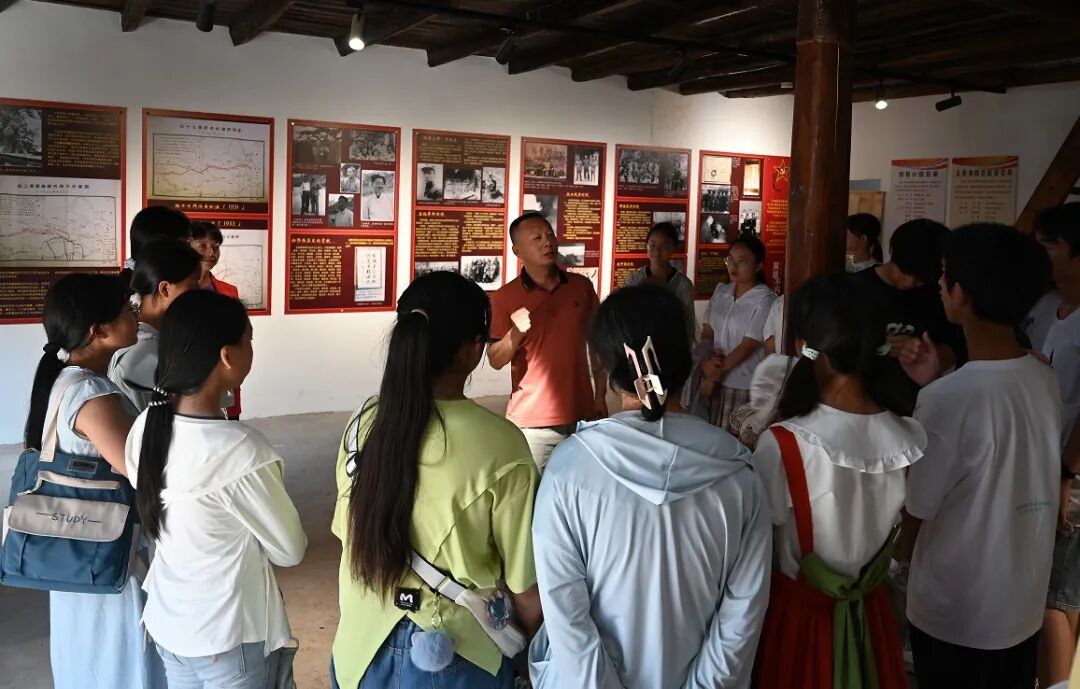2025年7月14日,松滋市刘家场镇宣讲团成员胡颖在红四军军部、红二军团部旧址为镇初级中学学生宣讲红色故事。刘霖珂摄