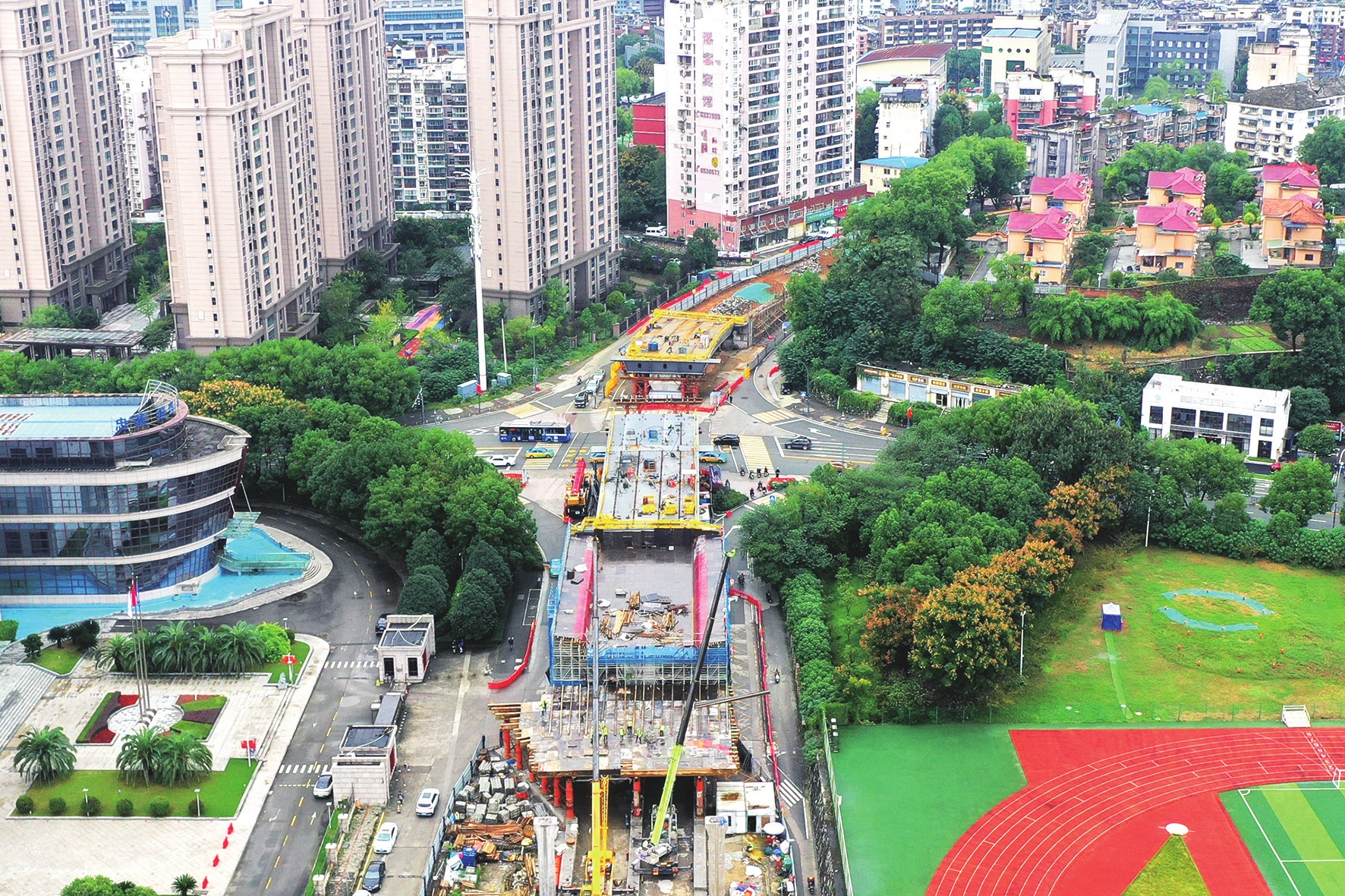 10月13日,夷陵长江大桥延伸段快速化改造工程城东大道与胜利三路交叉口建设项目正在加紧进行。该项目是我市“三环十二射”快速路网跨江环线的重要组成部分,西起胜利三路与沿江大道交叉口,东至橘乡大道路口顺接港窑路快速路,全长5.5公里。项目建成后将与夷桥路、已建港窑路快速路共同连接点军、西陵、伍家岗、夷陵四大组团的快速通道,进一步打通城市大动脉,使主城区的北向出口交通更加畅通便捷。(记者黄翔 摄)