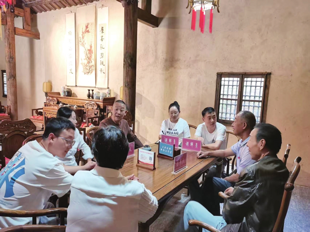 法治庭院内,“昭小君码上学法”互动区引人驻足;由乡公所旧址改造的“和茗调解坊”创新“三茶六调”工作法,成为矛盾化解终点站。近三年成功化解纠纷146起,化解率高达99.5%。此外,村里还将法律知识编成“三句半”小调,融入剪纸非遗,让普法工作真正“活”起来。