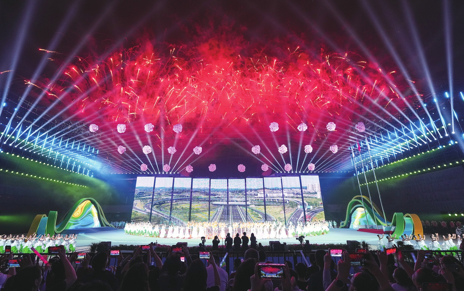 10月10日晚,宜昌市第七届运动会开幕式在夷陵区文化中心广场举行。图为开幕式现场。 (记者刘昆 摄)