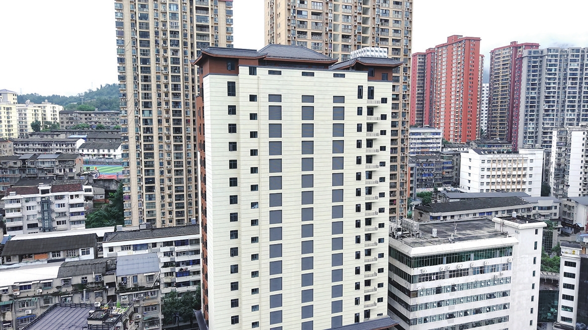 长阳粮食商业城停车场综合楼。(记者李博言 摄)