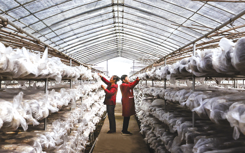 吉祥寺村的现代化香菇种植基地里,村民张成保的8000棒香菇整齐排列,静待出菇。“从8月制棒到5月出菇结束,每年能赚六七万,不比外出打工差,还能守着家。”他说。