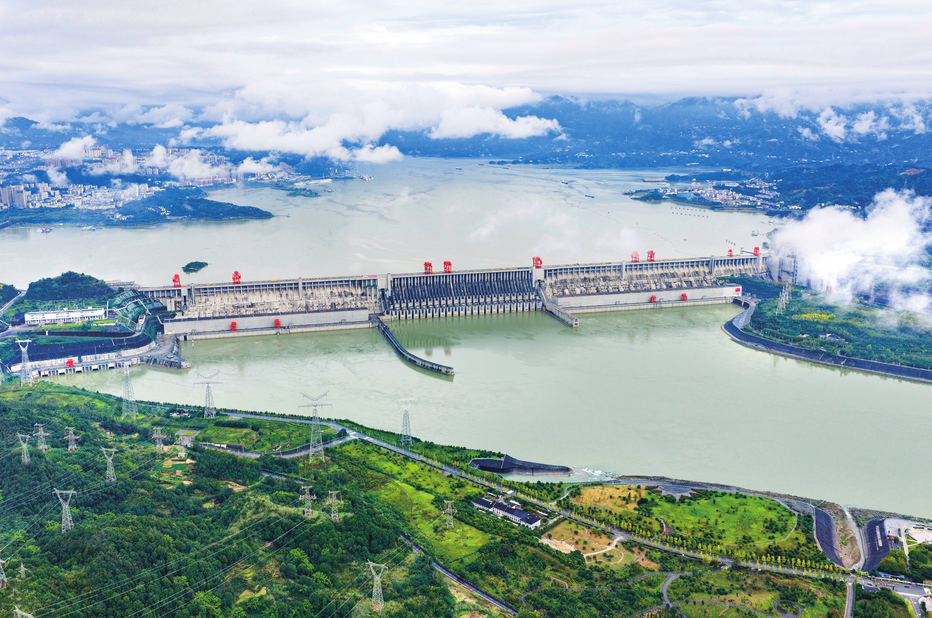 10月19日拍摄的三峡大坝及三峡电站外送输电线路(无人机照片)。截至10月17日,长江干流乌东德、白鹤滩、溪洛渡、向家坝、三峡和葛洲坝六座电站构成的世界最大清洁能源走廊,多年累计发电量突破4万亿千瓦时。今年前三季度,世界最大清洁能源走廊发电量达2351亿千瓦时。其中,单日发电量超10亿千瓦时天数达89天,最大日发电量达16亿千瓦时,在用电高峰时期有力支撑了电网安全稳定运行。(通讯员王辉富 摄)