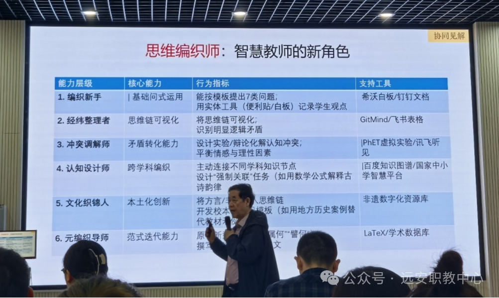 讲座中,祝教授特别强调了教师在新质教育背景下的角色转型——从“知识传授者”转变为“思维编织师”“学习设计师”与“人机协同引导者”。他通过多个学科案例,展示了如何利用生成式人工智能(GAI)开展差异化教学、动态评估与素养培育,推动教育从“标准化”走向“个性化”。(远安教育宣)
