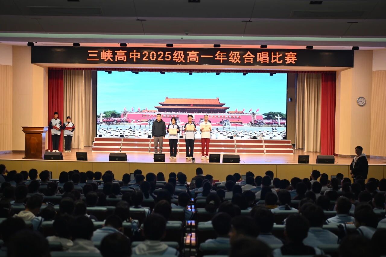 10月20日晚,三峡高中高一年级“红心向党 强国有我——青春歌声献礼英雄”合唱比赛决赛在学校礼堂隆重举行。经过前期初赛的激烈角逐,十一个班级凭借出色表现脱颖而出,最终站上决赛舞台,以歌声传递对祖国的热爱,向英雄致以崇高敬意。