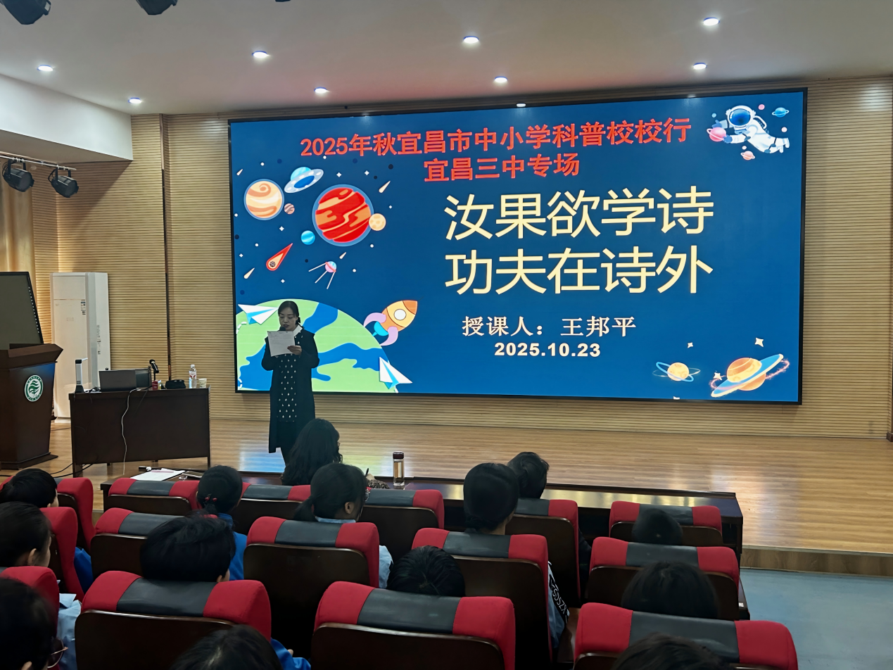 10月23日上午10时,宜昌市第三中学四楼会议室座无虚席,“科普校校行”活动正式拉开帷幕。著名物理教育专家王邦平教授受邀为八年级全体学生及理科教师带来一场别开生面的科普讲座。他通过理论讲解、模型展示与互动问答,为师生们呈现了一堂生动的科学实践课。学校校长冯亮、副校长席青及副书记杜家全与师生共同参与了此次活动。