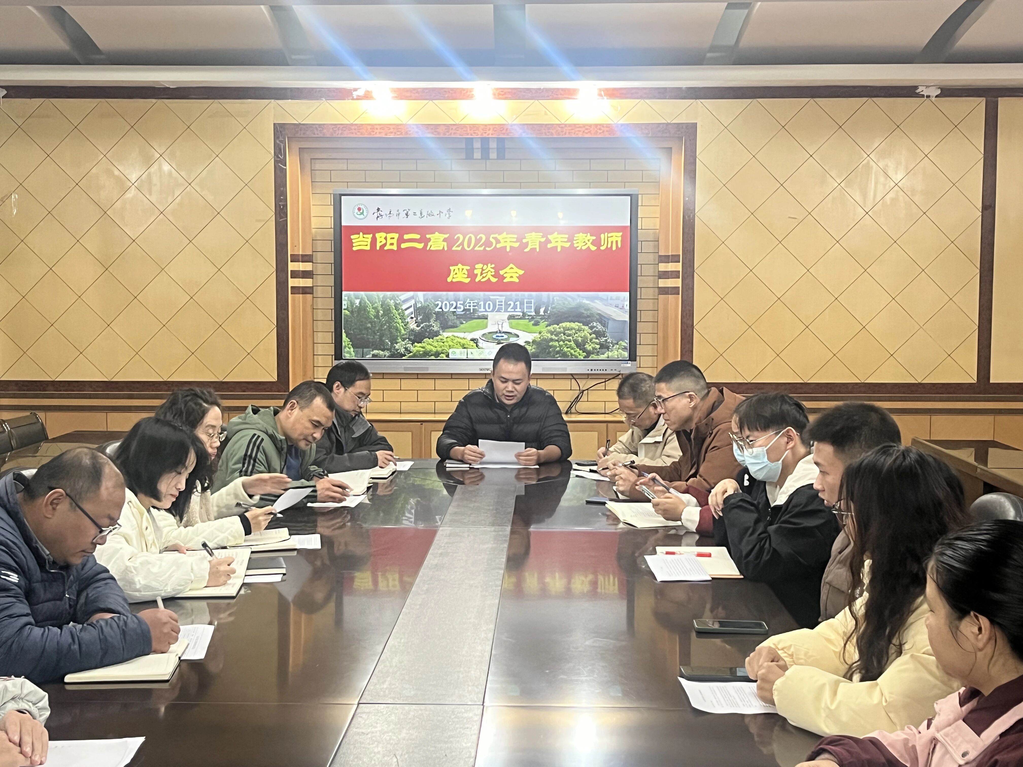 10月21日下午,当阳市第二高级中学在仲宣楼 409 会议室隆重召开青年教师座谈会。本次会议旨在搭建青年教师成长平台,深入了解青年教师的发展需求,激发教师队伍活力,凝聚学校发展共识。
