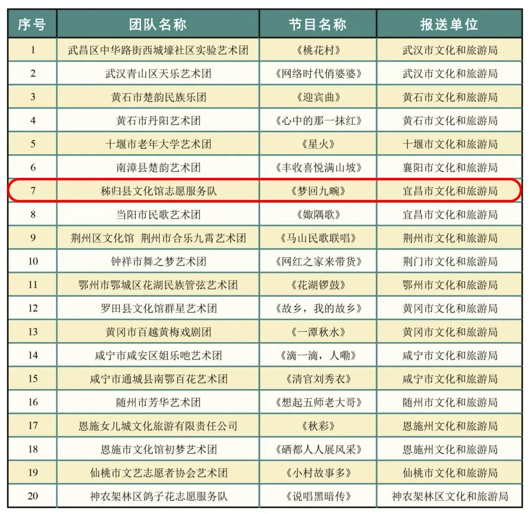 经层层推荐与专家评审,秭归县文化馆志愿服务队以深厚的文化底蕴和精彩的舞台呈现,成功跻身优秀团队行列,展现了秭归群众文化的蓬勃力量!