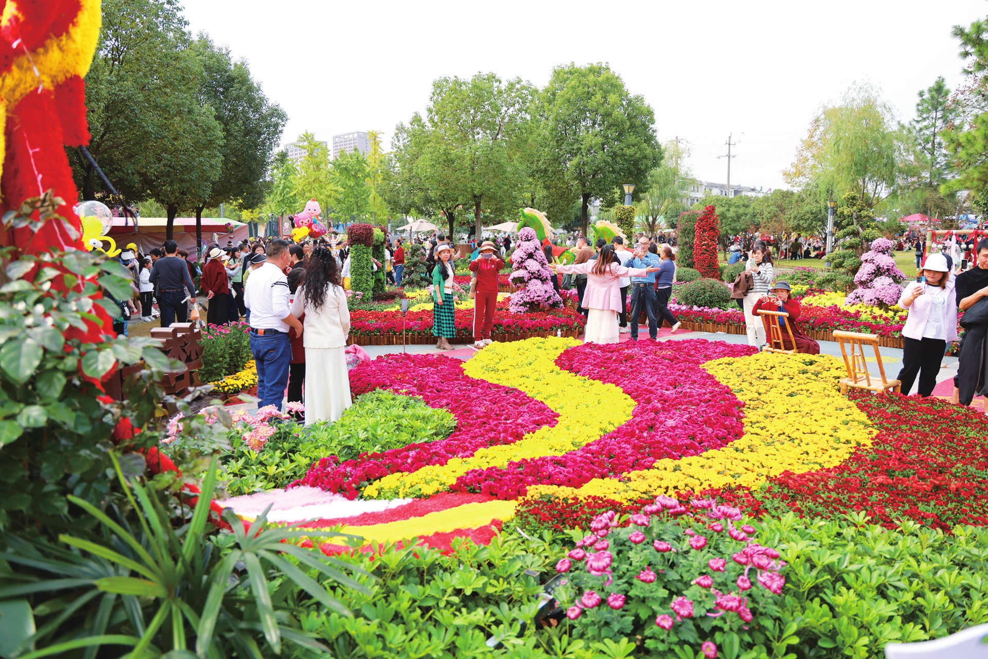 11月2日,在猇亭区六泉湖市民广场举行的第40届菊花展又现人山人海场面。这一集花卉展示、文化展览、消费体验于一体的多业态盛会,为市民游客带来了更多的欢乐与惊喜。