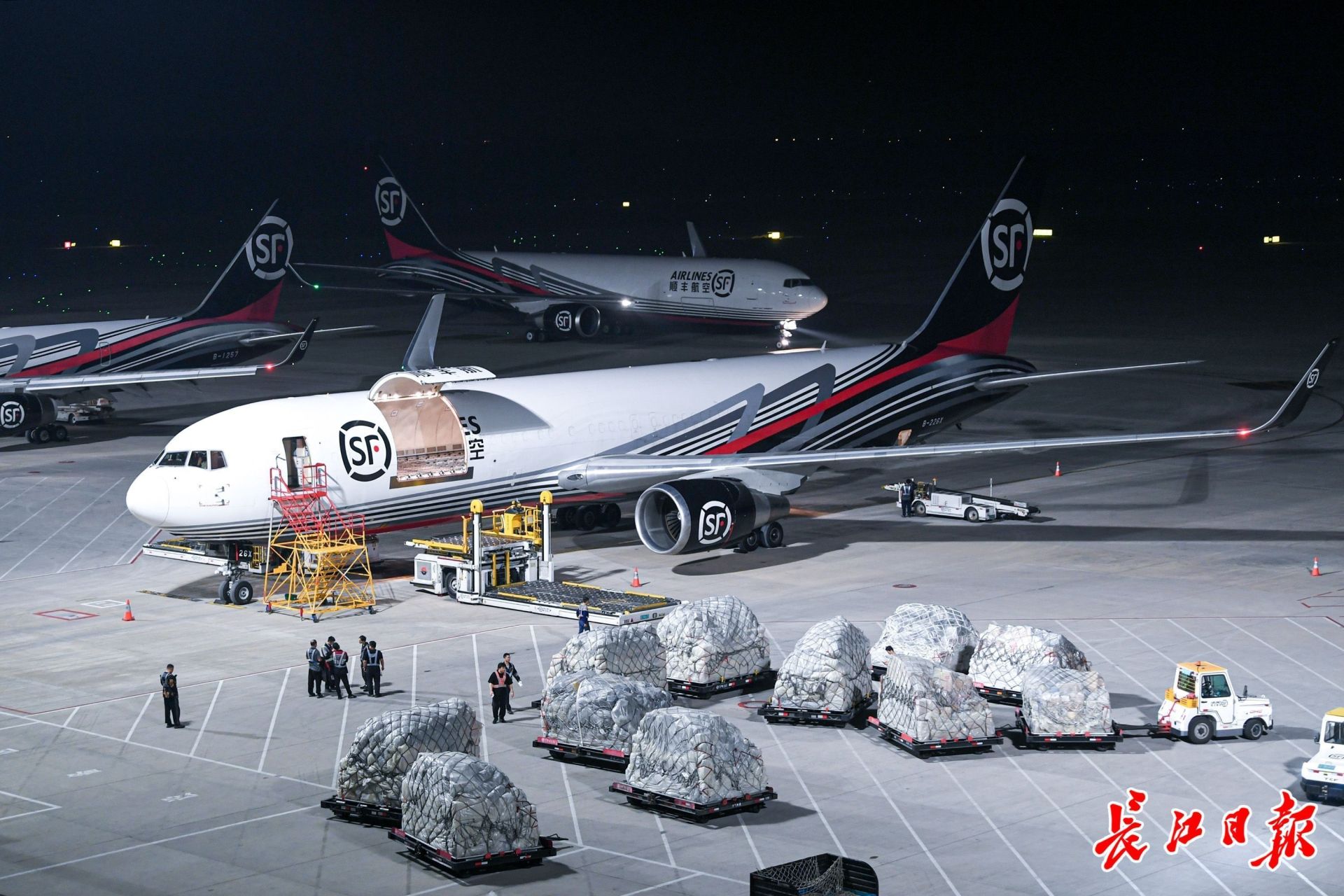 效率贯穿每个环节。在停机坪,数字平台提前获取航班信息,升降平台与转运车辆无缝衔接。“满载55吨的货机,卸货只需25分钟。”顺丰航空地服经理孙一丹说。