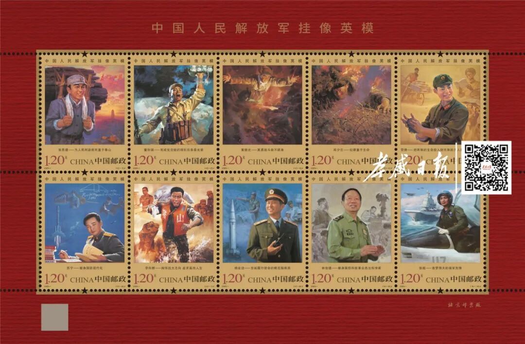 《中国人民解放军挂像英模》纪念邮票套票版。全媒体记者吴垠摄