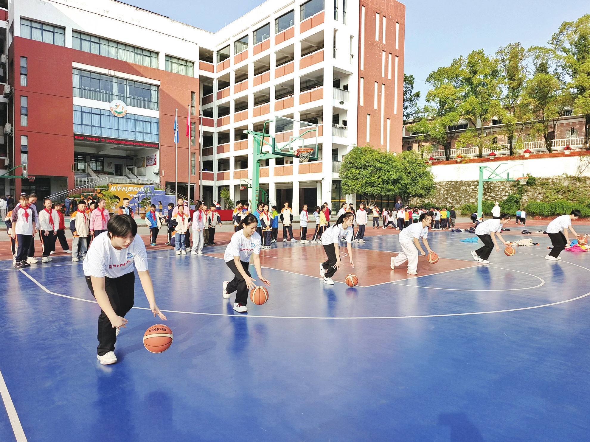11月5日,西陵区明珠小学操场热闹非凡,孩子们正在参加运球比赛。当日,湖北省“千师百校”宜昌体校支教活动暨明珠小学秋季运动会举行,来自市体校的运动员和学生们一起参加了田径、武术、篮球项目的比赛。通过开展体育赛事,弘扬体育精神,促进学生全面发展。(记者黄翔、通讯员冀丹 摄)