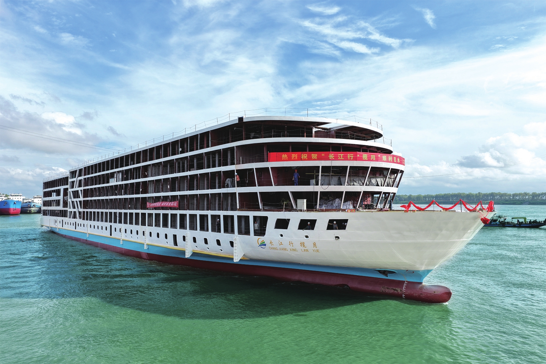 该游轮约150米长、23米宽,共7层,有259间客房,最大载客量650人。冯长江说:“长江行·揽月”游轮拥有近2万平方米的平面空间,可满足游客“食、住、行、游、娱”一站式需求,是目前国内尺寸最大的绿色低碳环保型度假游轮之一。它采用“燃油+动力电池”混合动力系统,结合增程式推进与智能能耗管理,可实现1500公里超长续航。相较同等尺寸游轮,“长江行·揽月”游轮可节能20%以上。