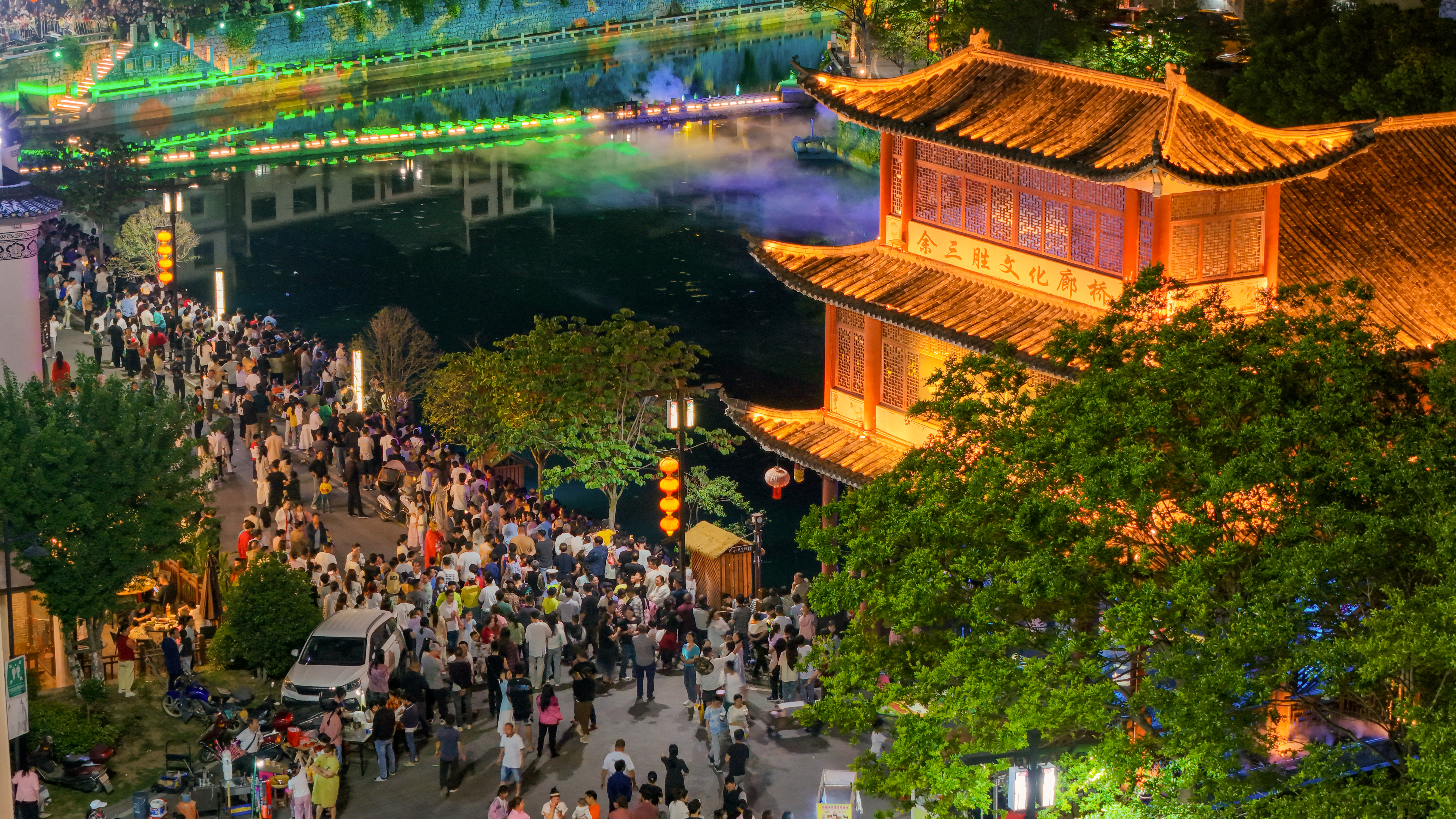 文旅融合催生产品升级。罗田将京剧元素全面融入旅游场景:余三胜纪念馆成为必访地标,360度环绕剧场的《不识·余三胜》演出场场爆满,《梦回鸠兹》实景演出让夜游经济焕发活力。在此基础上,当地精心设计“京剧溯源研学游”“余派艺术体验游”等特色线路,串联余氏故居、七娘山祖墓、三胜茶楼等点位,形成“听戏、看戏、寻戏”的完整体验链。凌珂在天堂寨玻璃栈道演绎的余派选段,更让自然景观与国粹艺术深度融合,成为网红打卡场景。